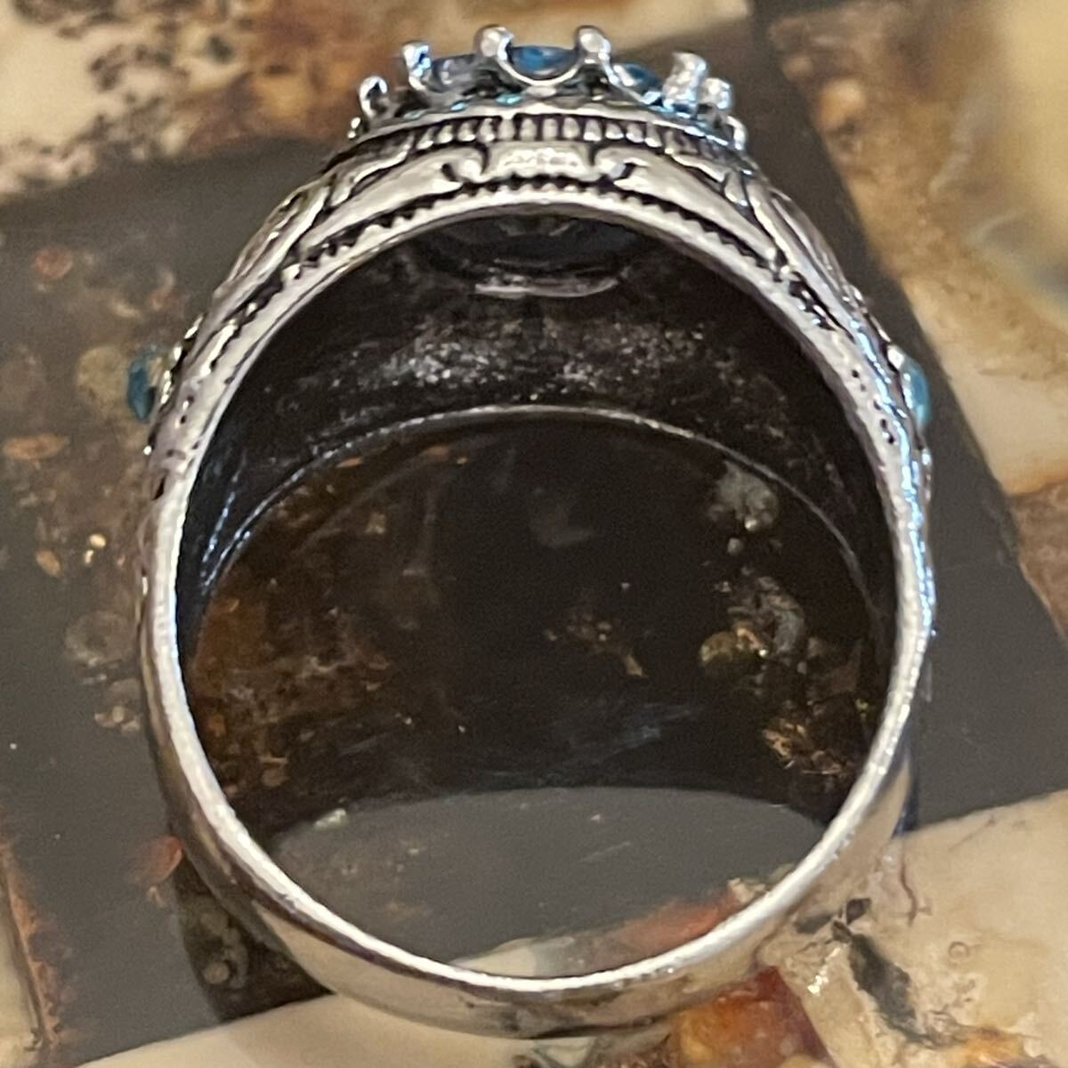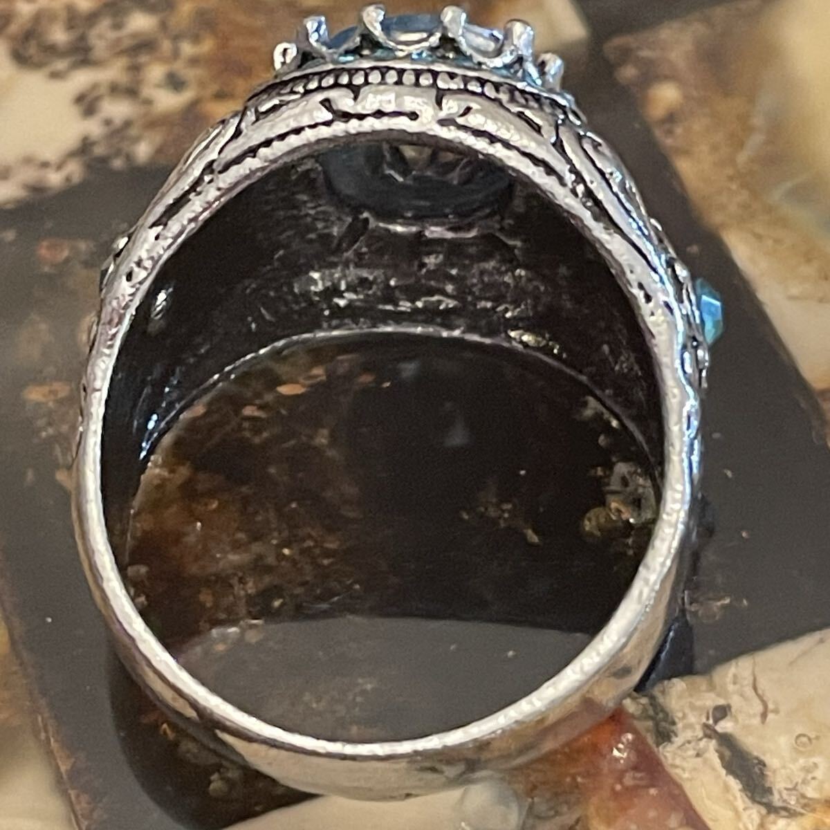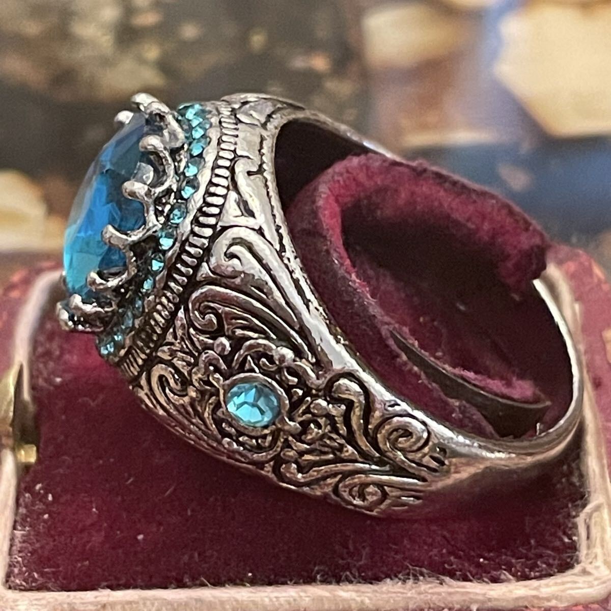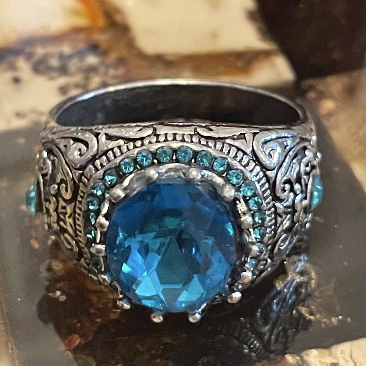英国 イギリス ヴィンテージ ブルートパーズ風 青 水色 指輪 リング 26号 派手 推し活 推し色 青担当 銀色 シルバー LIVE参戦 演劇 小道具 コスプレ ビンテージ アンティーク