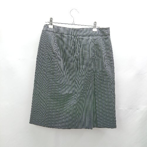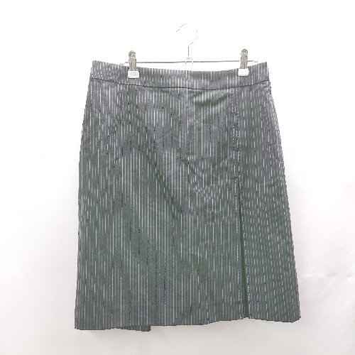 ◇ ⊂ PS Paul Smith ポールスミス ストライプ柄 ウール混合 膝下丈 フレア スカート サイズ42 ネイビー レディース E