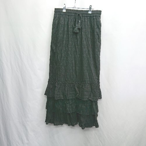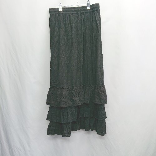 ◇ ⊂ Simplicite サンプリシテ ウエストゴム 総レース ロング フレア スカート サイズ表記なし ブラック系 レディース E