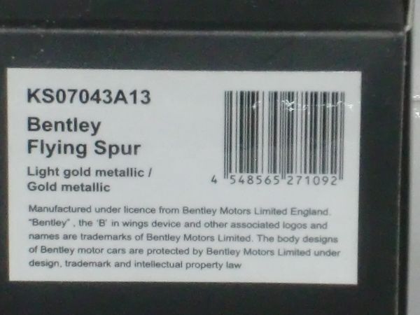 ☆1/64程度 京商 Bentley Flying Spur 金です。箱に少し痛みなどがありますので、ご了承の上入札下さい。商品の状況は写真でご判断の 上、ノ-クレ-ム・ノ-リタ-ンでお願いします。保証はできませんが、定形外郵便での発送も可能です。