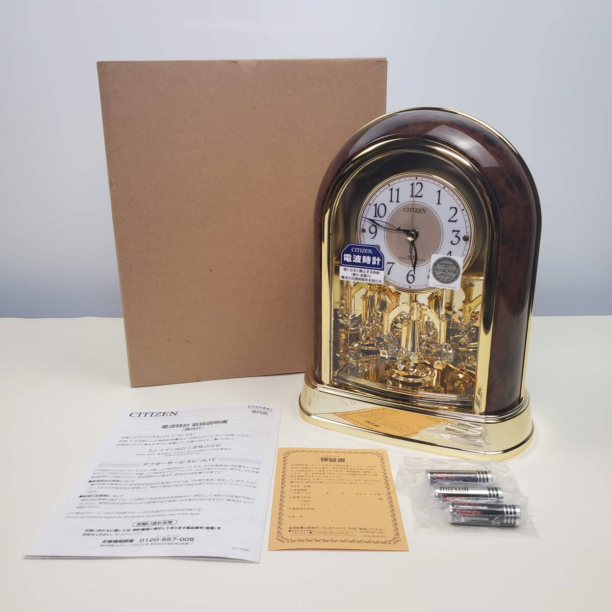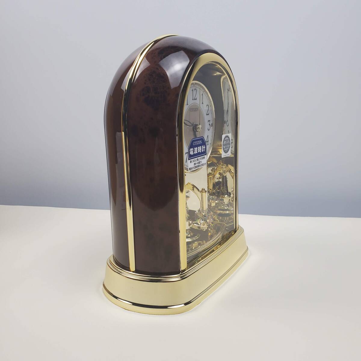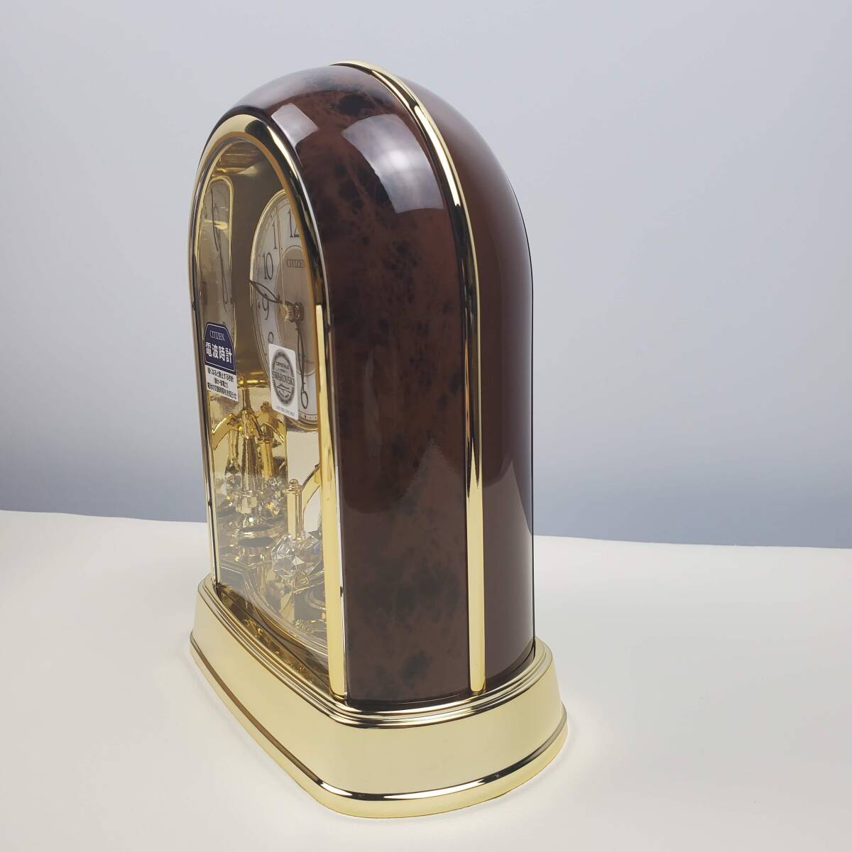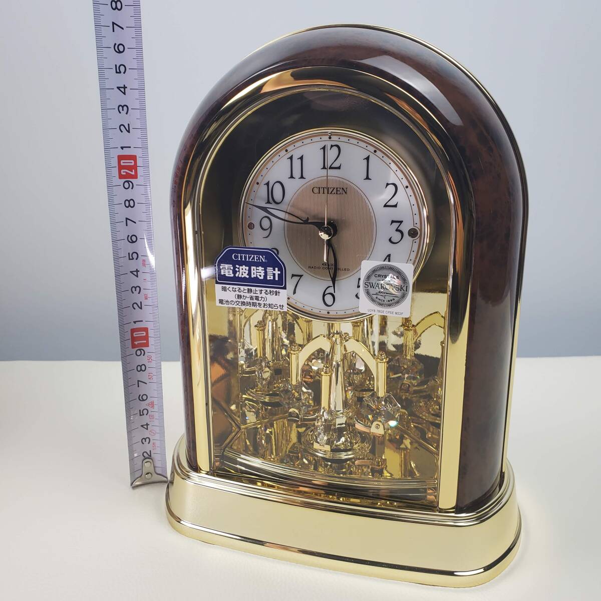 【未使用】CITIZEN シチズン 電波 置時計 木目調 クリスタル回転飾り付 スワロフスキー 電波時計 4RY656-023