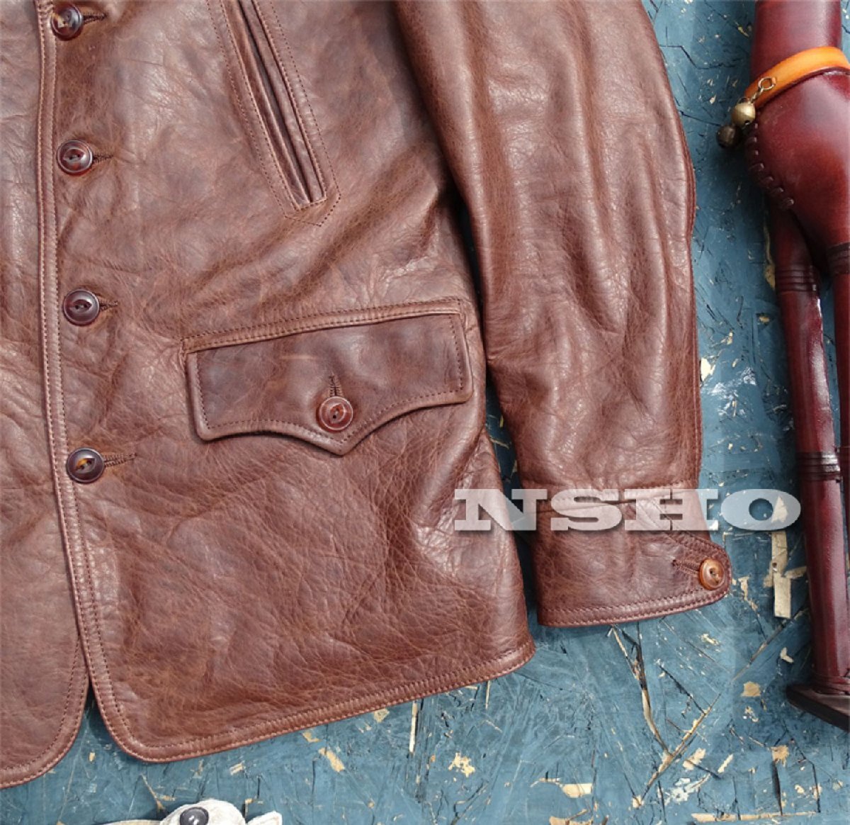 ★ご落札後お取引ナビでご希望サイズをお知らせください★ 1.2mm厚のホースハイドを使用した、復刻20'sスタイルのスイッチヤードコートです。 カーコートやブレーキマンコートの要素を取り入れた重厚なデザインが魅力です。 馬革ならではの堅牢さと、植物鞣しによるしっかりとした質感をお楽しみいただけます。 染料仕上げにより奥行きのある風合いを持ち、着込むほどに深い味わいへと変化します。 ワークコートとしての実用性と、ヴィンテージライクな雰囲気を兼ね備えています。 シンプルで無骨な佇まいが、大人のスタイルに存在感を与えてくれます。 クラシックなレザージャケットをお探しの方におすすめの一着です。 長く愛用することで、唯一無二の経年変化を楽しんでいただけます。 ■状 態 :新品未使用 ■カラー :画像参考 ■実 寸 :背中側採寸 身幅/脇下すぐ ■SIZE :画像参考 ■素材:ホースハイド (馬革) ※サイズだけでは無く,必ず実寸をご確認下さい。 ※実寸は平置実寸。計測の仕方で若干の誤差がありますので参考程度。 |