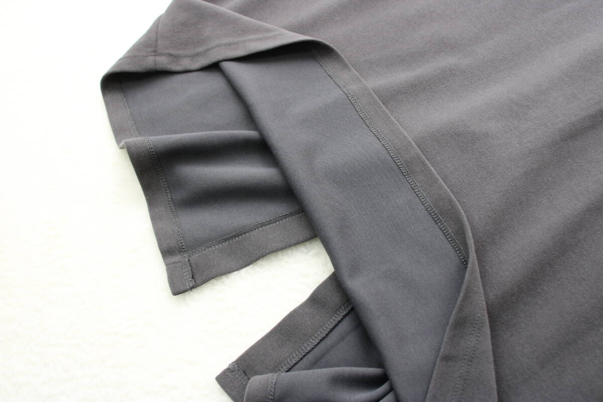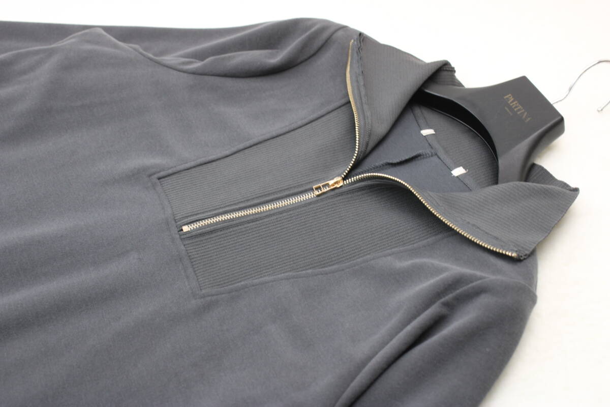 6424 新品 ハーフジップリブ切替ワンピース チャコールグレーFサイズ