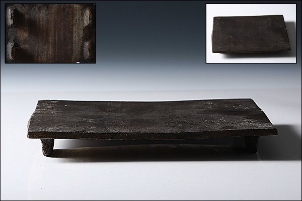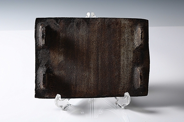 SP1645 石原稔久 父 石原祥嗣 黒刷毛目 足付皿 板皿 角皿 工房 一石 検) ほぼ日 百草 ももぐさ