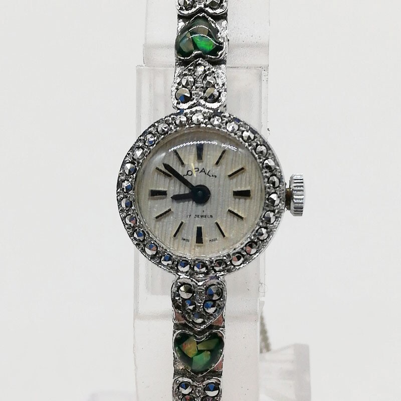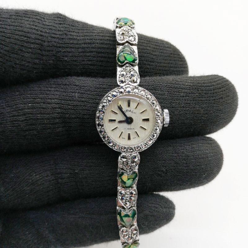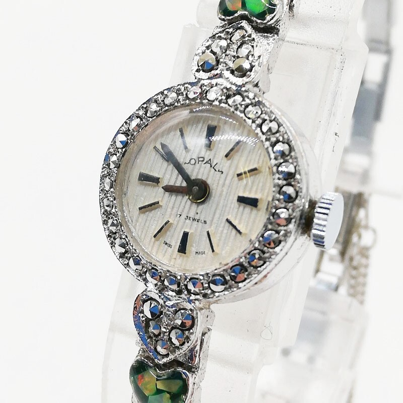 稼動品 OPAL オパール SWISS MADE 17石 腕時計 手巻き オパール 装飾 ブレスレット マルカジット アールデコ細工 ヴィンテージ 34-69