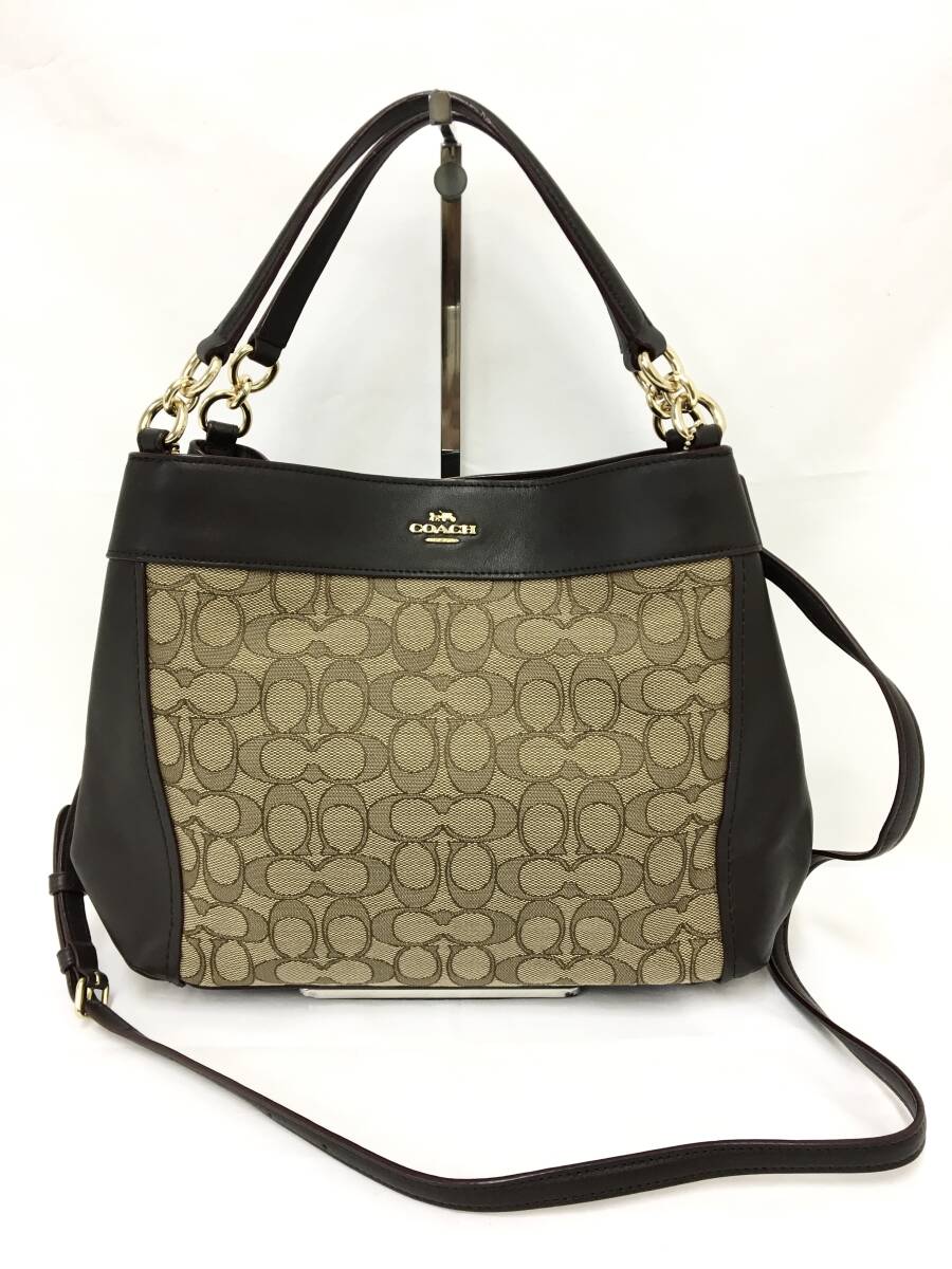 ◇1円◇ COACH コーチ 2way ショルダー バッグ F29548 ハンド トート シグネチャー 総柄 キャンバス×レザー レディース 鞄 カバン