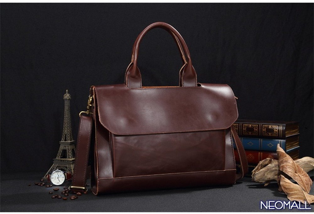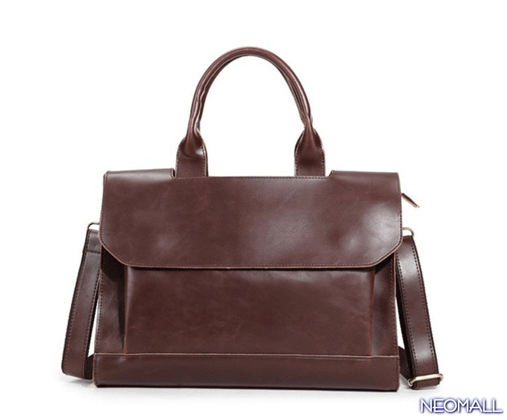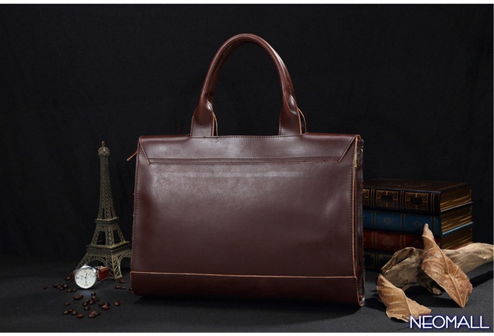 お買得☆ 新品 メンズ 高級PUレザー ビジネスバッグ【581】ブラウン ブリーフケース ショルダー スクエア 横型 大人気 上質 質感◎ 未使用