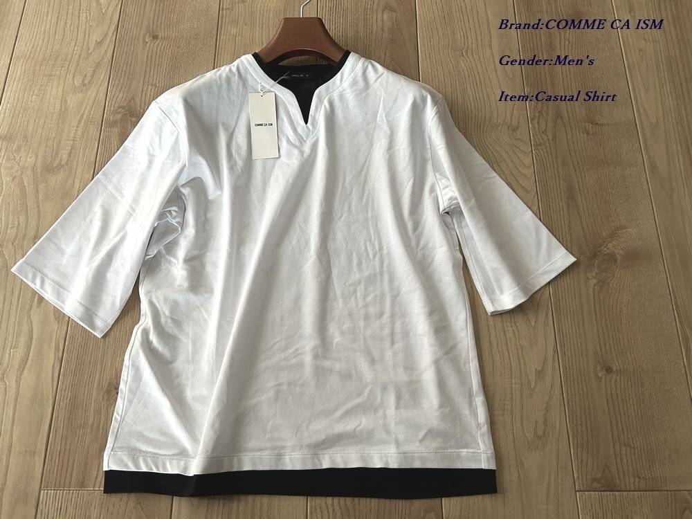 新品 COMME CA ISM MEN コムサイズム 7分袖 フェイクレイヤード キーネックTシャツ 01ホワイト Mサイズ 60TI12 定価3,900円