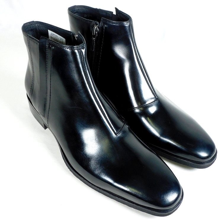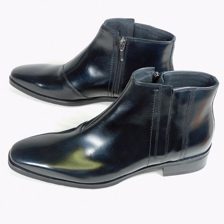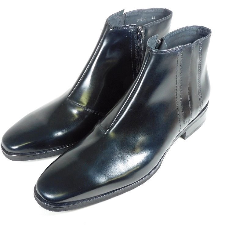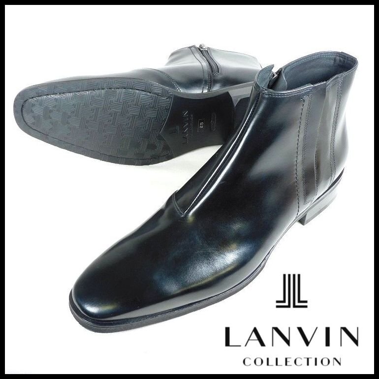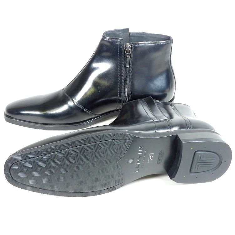新品 1円~ ランバンコレクション ビジネス サイドジップブーツ 25cm 黒 スムースレザー LANVIN COLLECTION madras社製 メンズ【5049】