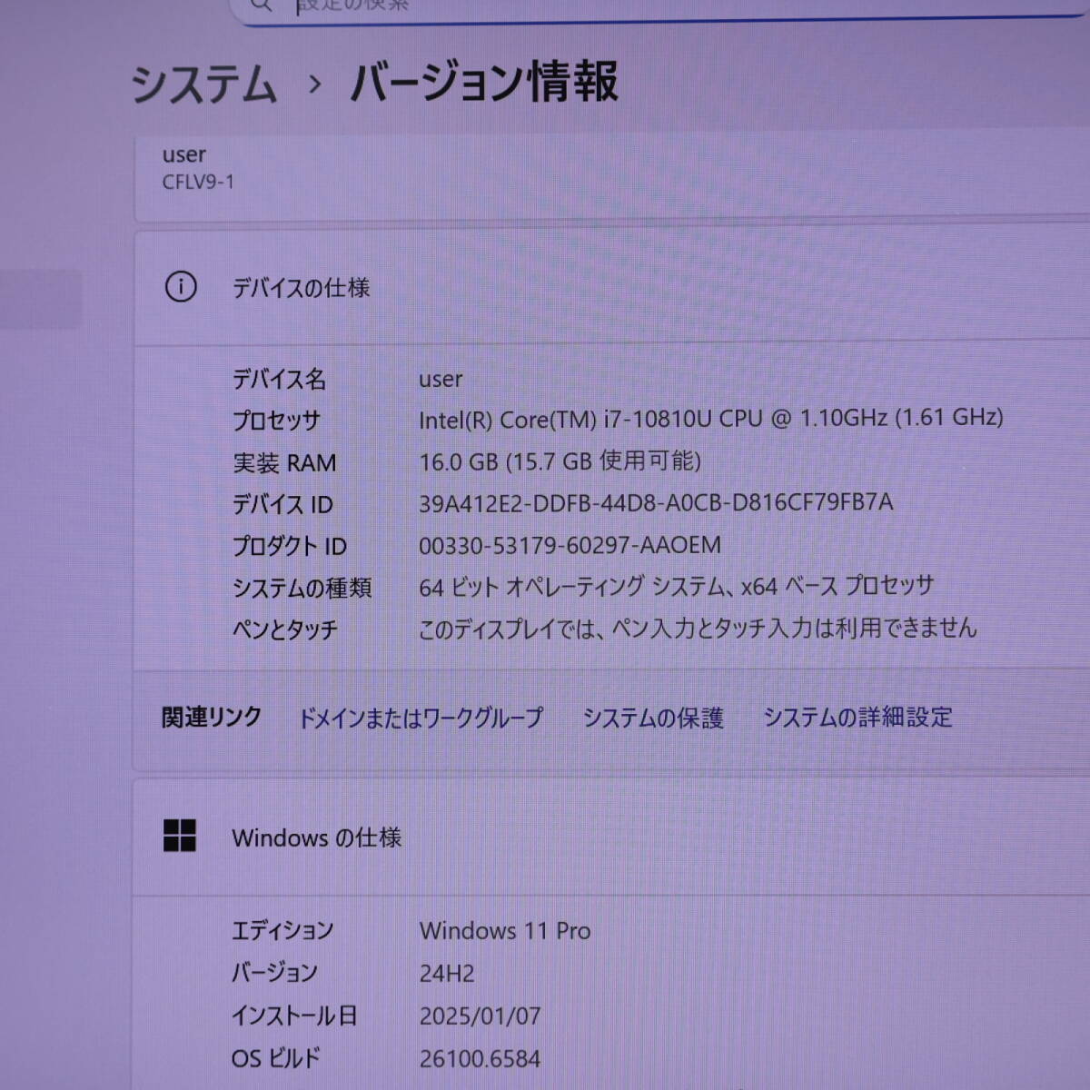 ★超美品 最上級10世代i7!M.2 NVMeSSD512GB メモリ16GB★CF-LV9 Core i7-10810U Webカメラ TypeC LTE Win11 MS Office2019 H&B★P92523