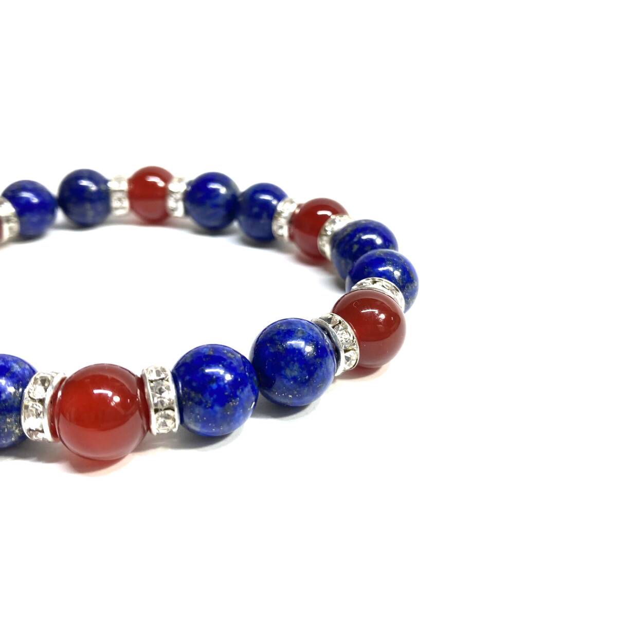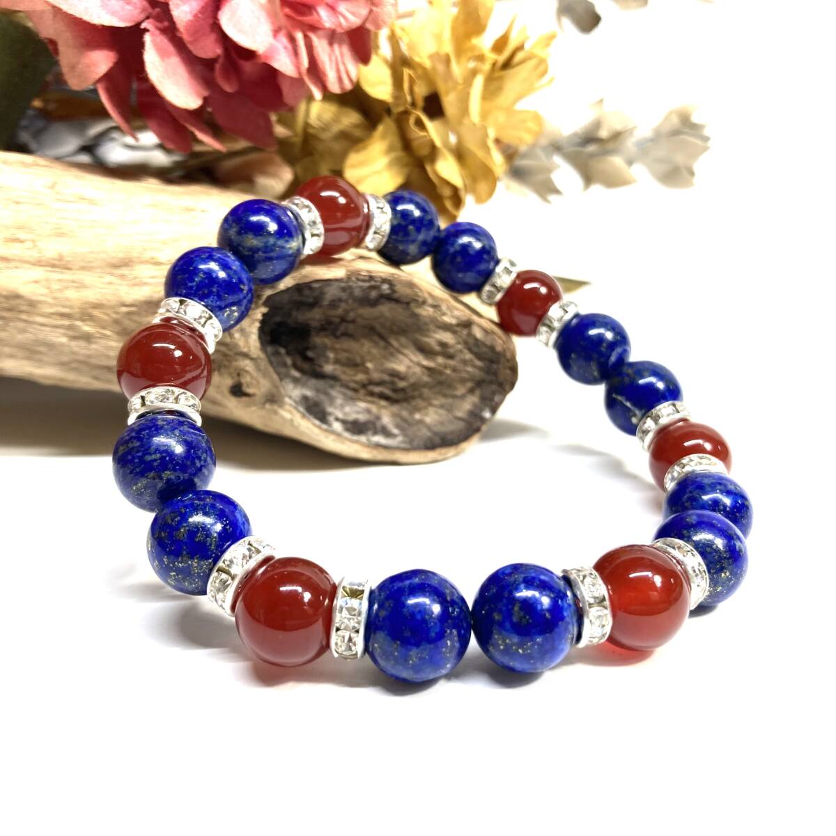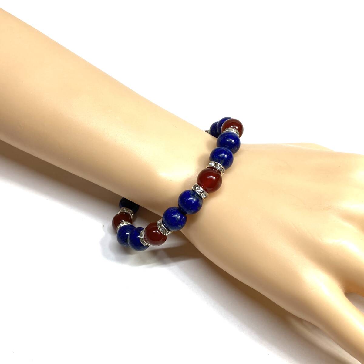 ラピスラズリ&赤瑪瑙 パワーストーン ブレスレット 天然石ブレス (シルバー) 10mm メンズ・レディース ☆