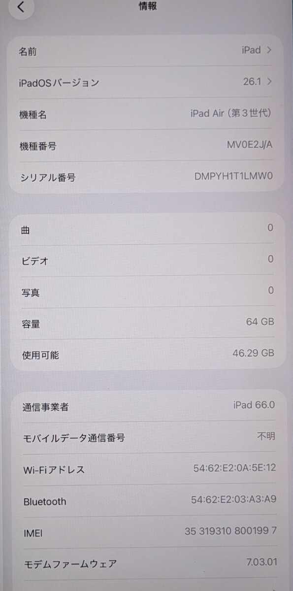 SIMフリー!◆Apple iPad Air 第3世代 Wi-Fi+Cellularモデル 64GB◆
