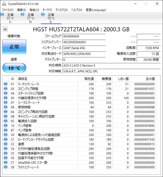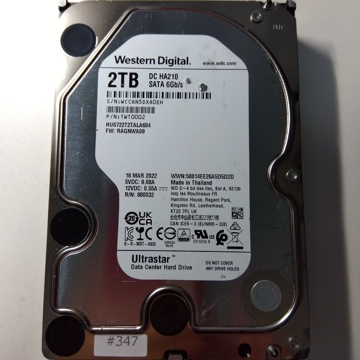 HDD 2TB 3.5インチハードディスク / Crystal DiskInfo 正常 / #347 / Western Digital / HGST HUS722T2TALA604