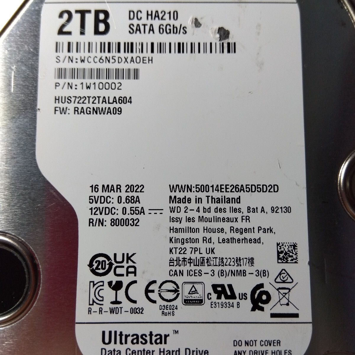 Western Digital HDD 2TB WD Ultrastar データセンター 3.5インチ 内蔵HDD HUS722T2TALA604