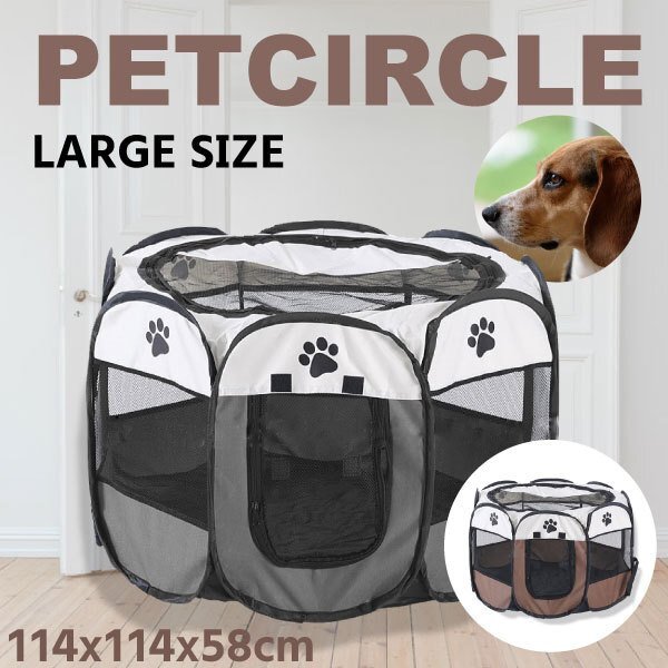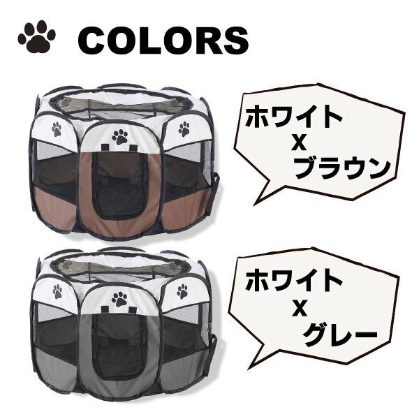 | ☆肉球ペットサークル 肉球 Lサイズ 114cm オーダーフォームにご希望のカラーをご入力ください ( ホワイトxブラウン/ ホワイトxグレー ) 【商品名】 ペットサークル 肉球 Lサイズ 【カラー】 ■ホワイトxブラウン ■ホワイトxグレー 【サイズ】 約114×58cm ラージ(L) 【素材】 オックスフォードクロス 【特徴】 ◆ゆったり楽しめる広いペットサークルです。 ◆オックスフォード素材なのでワンちゃんの健康も安心! ◆天井は開閉式。天井がなくオープンな雰囲気でワンちゃんと一緒に楽しめます♪ ◆折りたたみが簡単にできてコンパクト!旅行先にも、ちょっとした公園へのお出かけでも使えます。 | ||||