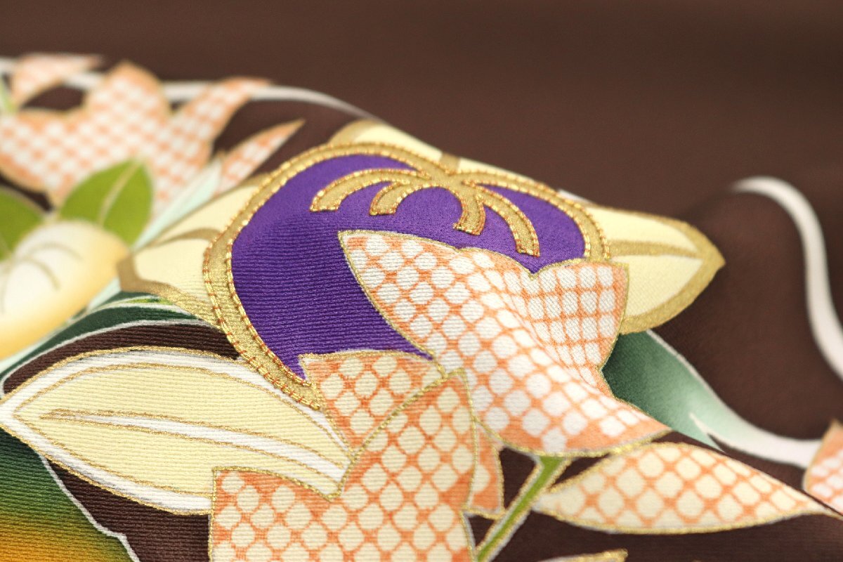 しっとりとした上質な生地は、焦げ茶色のお色目でございます。