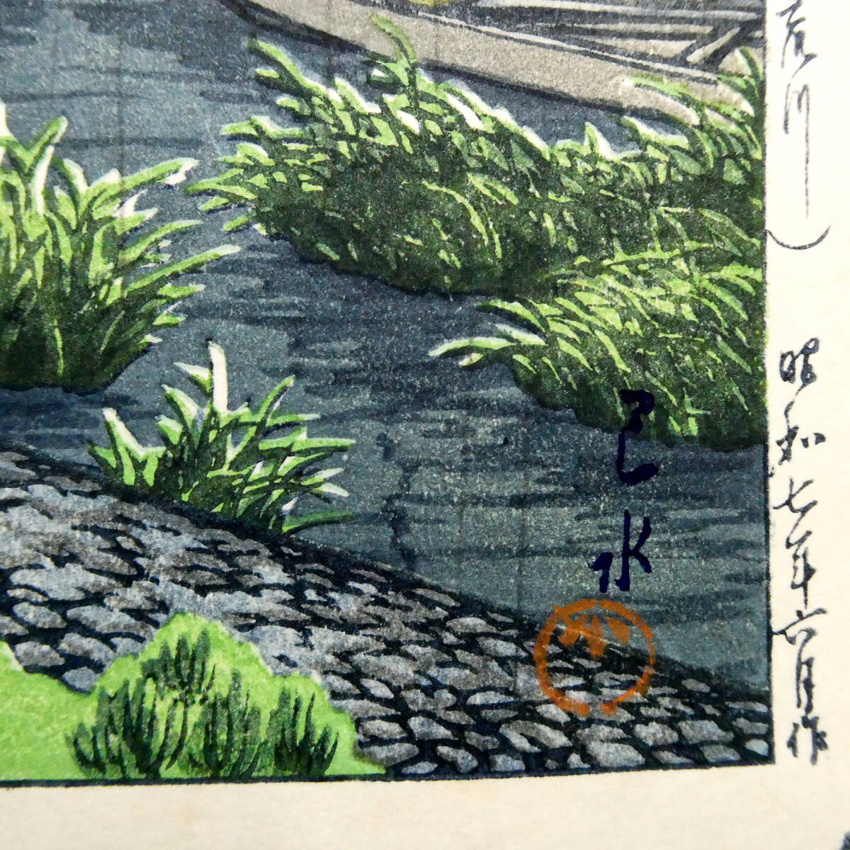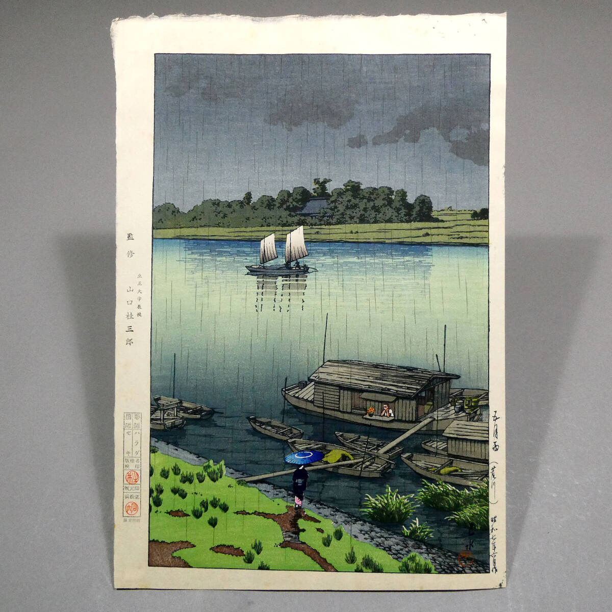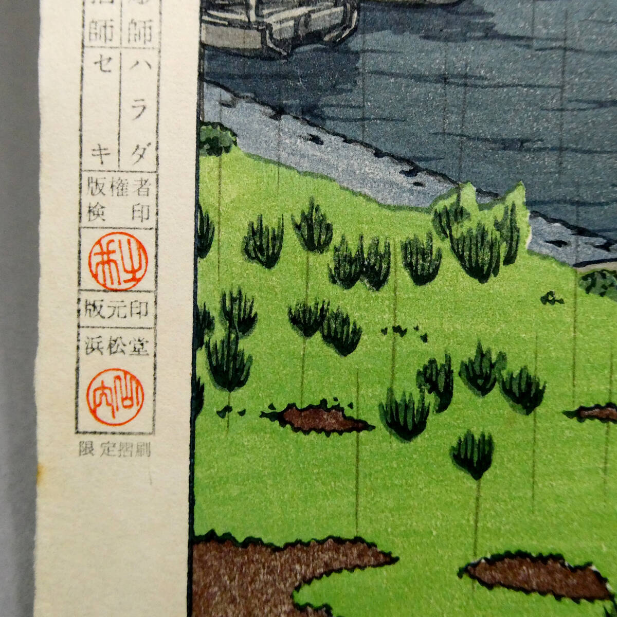 川瀬巴水◆新版画 木版画作品「五月雨(荒川)」◆山口桂三郎 監修◆彫 ハラダ/摺 セキ◆吉田博 光逸 古邨 笠松紫浪 井上安治 清親 深水 5
