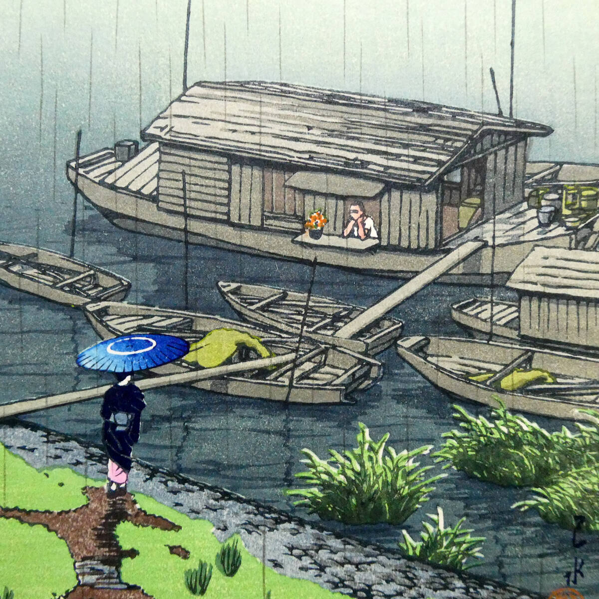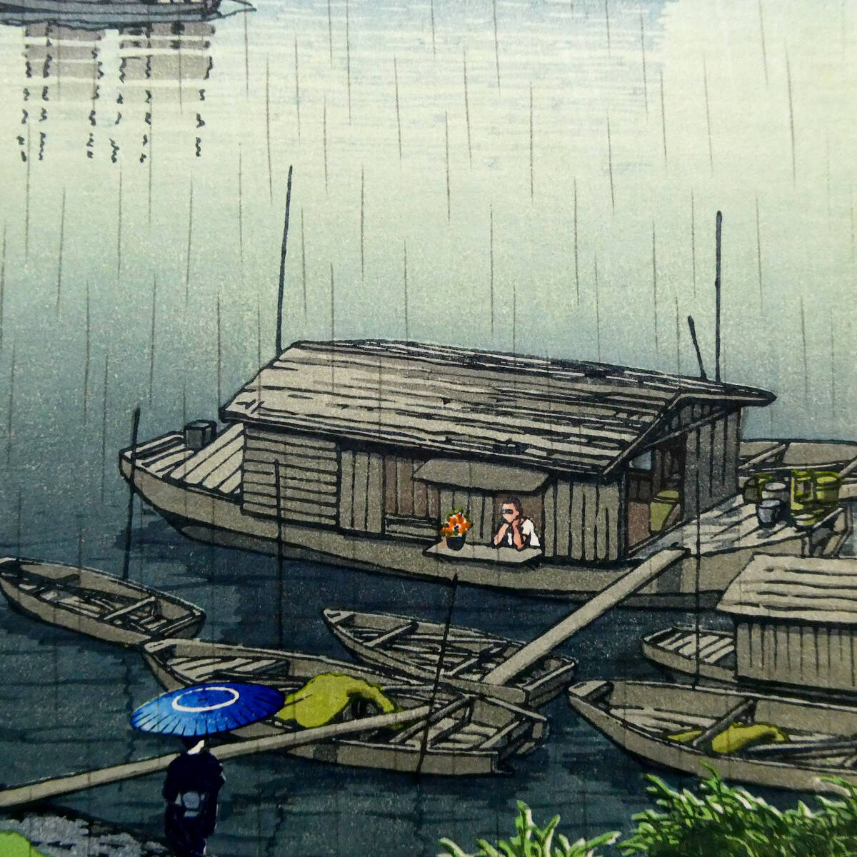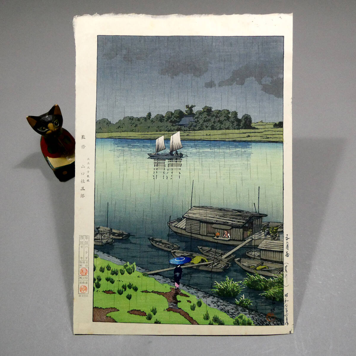川瀬巴水◆新版画 木版画作品「五月雨(荒川)」◆山口桂三郎 監修◆彫 ハラダ/摺 セキ◆吉田博 光逸 古邨 笠松紫浪 井上安治 清親 深水 5