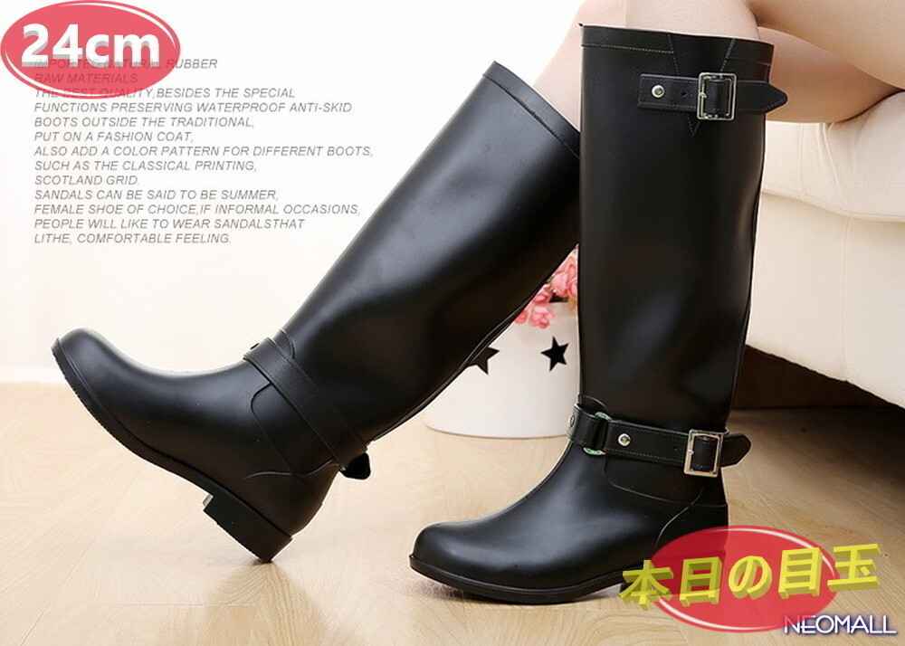 1スタ☆ ロングレインブーツ【488】 24.0cm ブラック×ブラック ジッパー付きで履きやすい!防水 レインシューズ レディース 長靴
