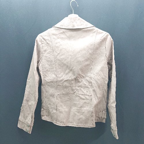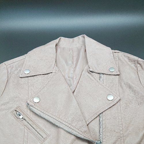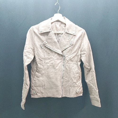 ◇ Riche glamour カジュアル 革 シンプル レザー 長袖 ライダースジャケット サイズM ピンクベージュ レディース E