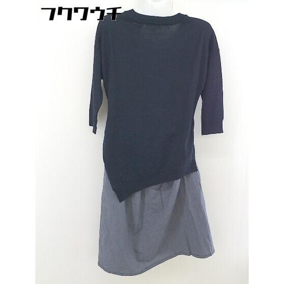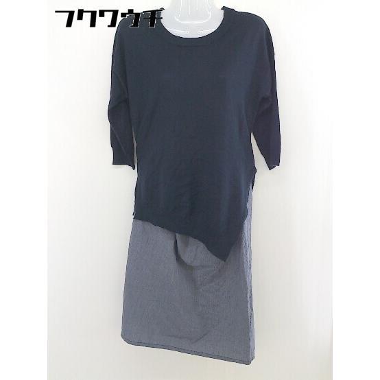 ◇ niko and … ニコアンド レイヤード調 七分袖 膝下丈 ワンピース サイズ3 ネイビー レディース