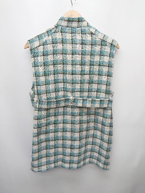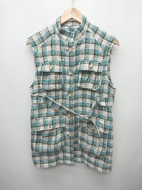 ◇ ◎ KBF アーバンリサーチ チェック カジュアル ベスト サイズONE ライトブルー ホワイト レディース P