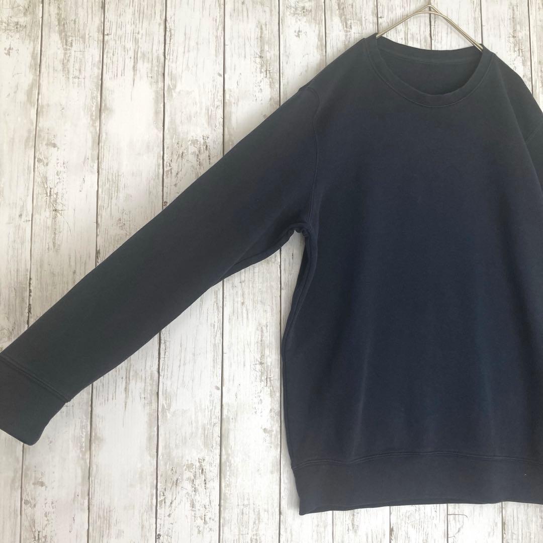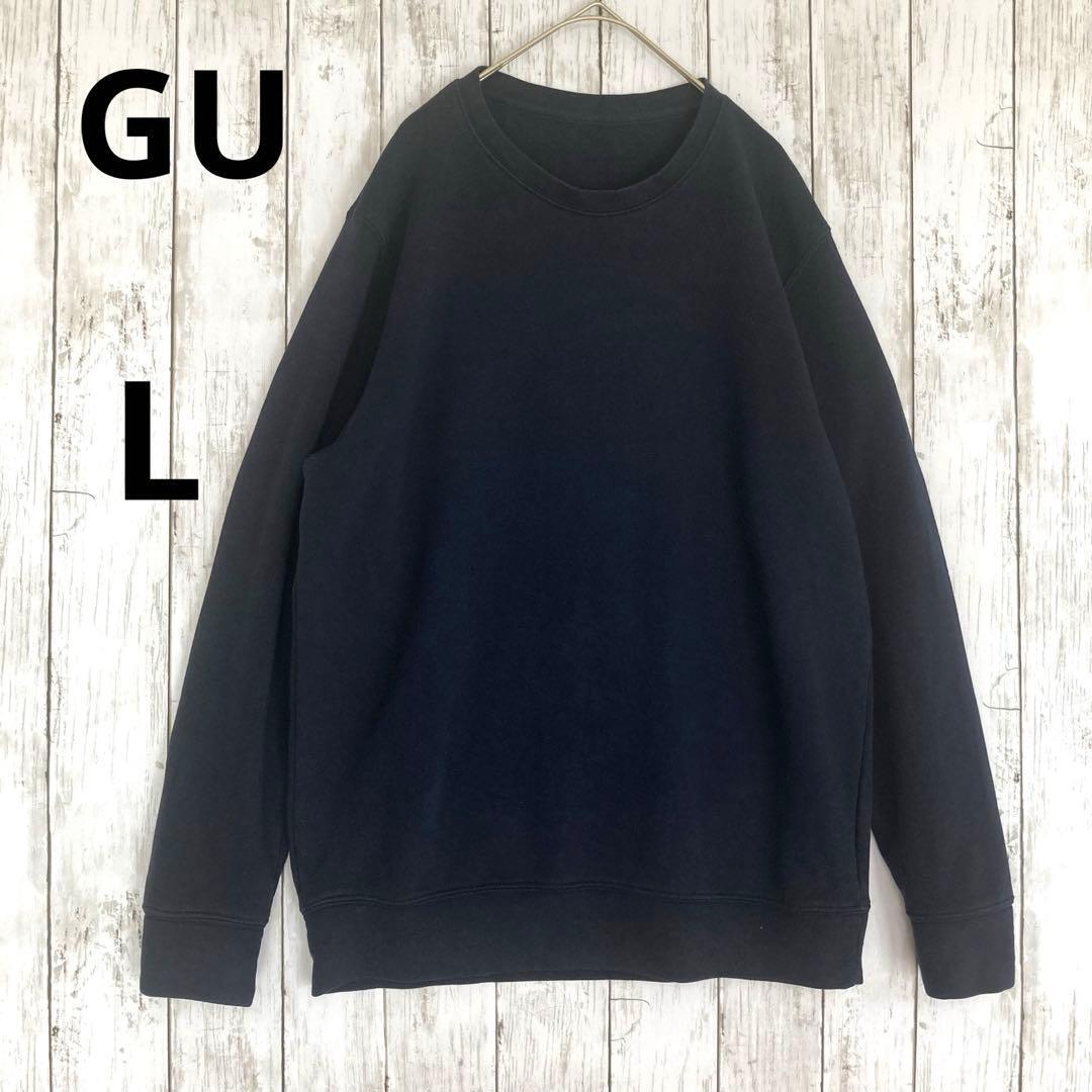 【GU】ジーユー メンズクルーネック長袖スウェットトレーナー ネイビーL無地 0BFF81