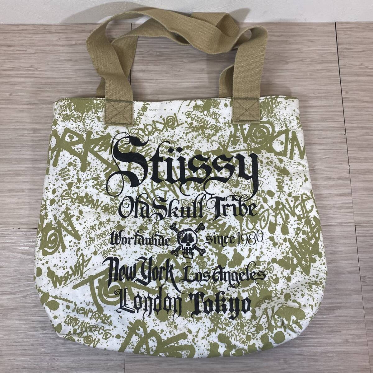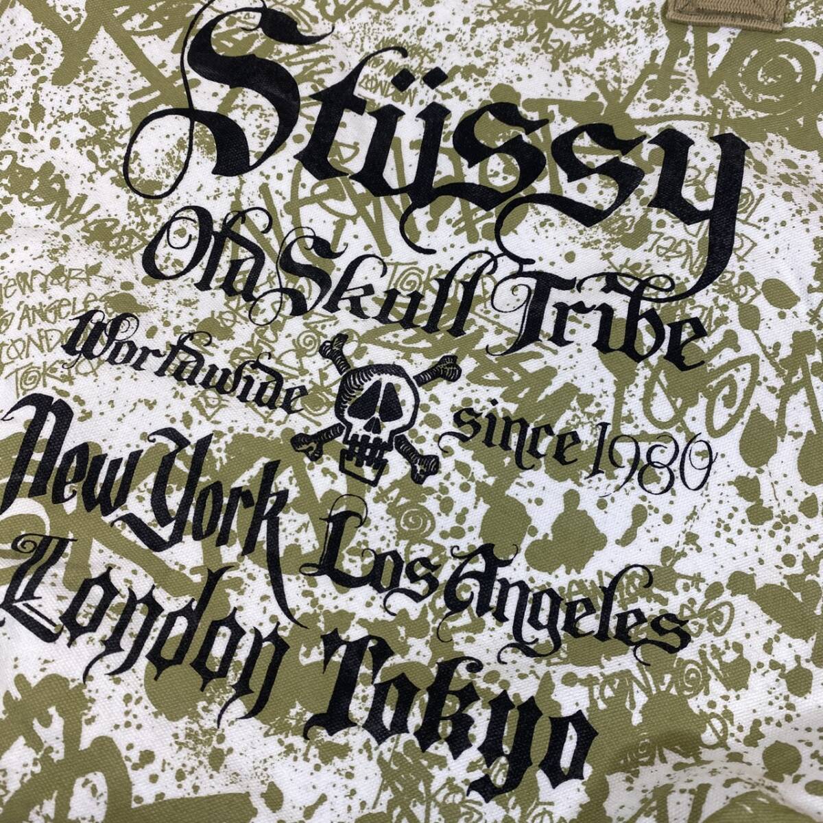 ●【MH-1726】中古美品 STUSSY ステューシー Ola Skull Tribe トートバッグ 総柄 迷彩風【レターパックプラス可】
