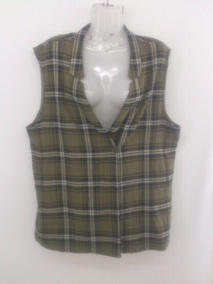 ◇ LEPSIM レプシィム チェック柄 ロング ジレ ベスト サイズF カーキ系 マルチ レディース P