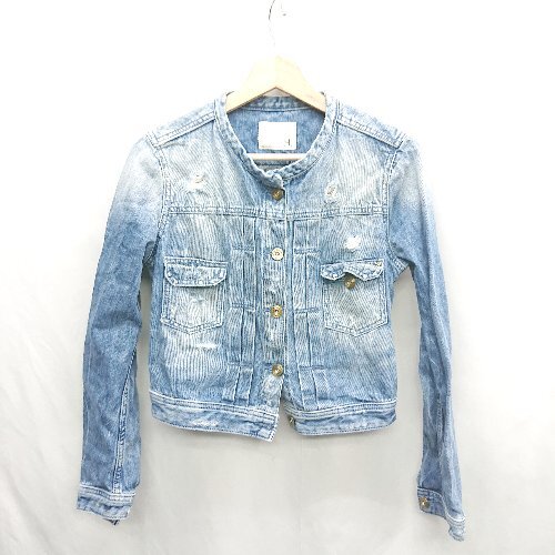 ◇ ⊂ ST ROSE BUD ローズバッド ダメージ加工 長袖 クラッシュデニムジャケット サイズ34 ブルー レディース E