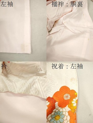 | 着物【祝着:正絹、襦袢:化繊・一つ紋】の状態は接写画像のように祝着の左袖・衿に薄い汚れがございますが その他特に目立ったシミ汚れなどもなく大変良い状態です。 長襦袢【化繊】の状態は接写画像のように左袖・胴裏に薄い汚れがございますが その他特に目立ったシミ汚れなどもなく大変良い状態です。 大変上質な逸品になります。 お安く出品致しますので、是非この機会にいかがでしょうか? ※襦袢は祝着に縫い付けられております。