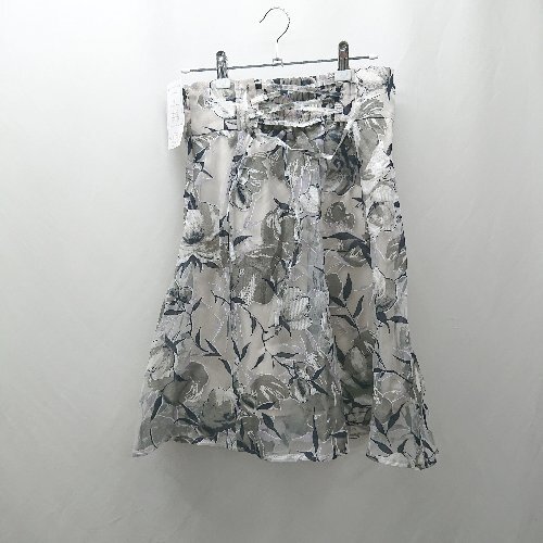 ◇ ⊂ CITYHILL 花柄 膝丈 フレア バックレースアップ膝丈スカート サイズS グレー系 レディース E