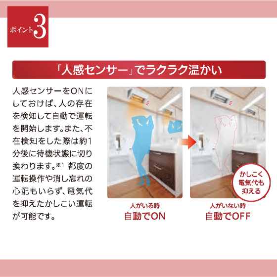 ・ヒートショック予防に、遠赤外線で体をすばやく温める、壁掛型遠赤外線暖房機。