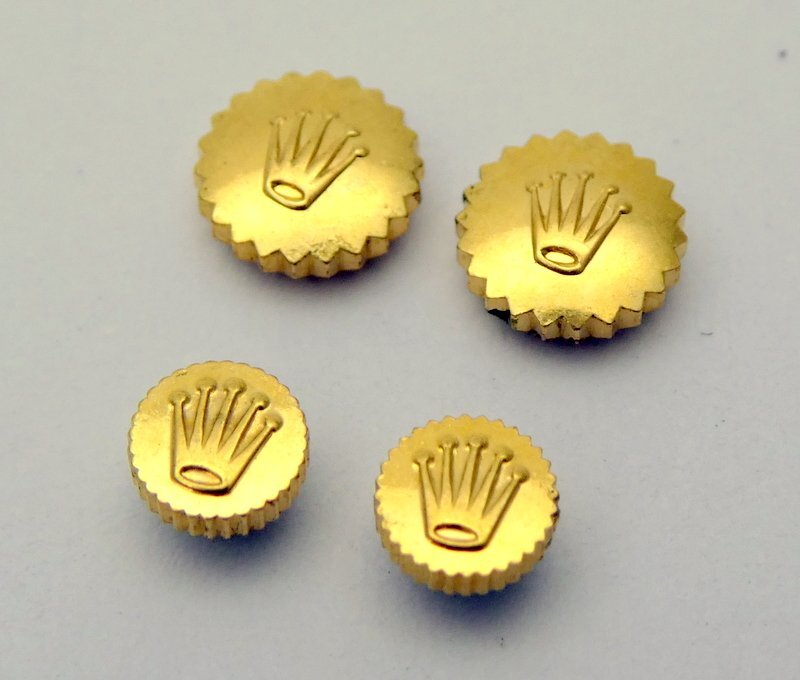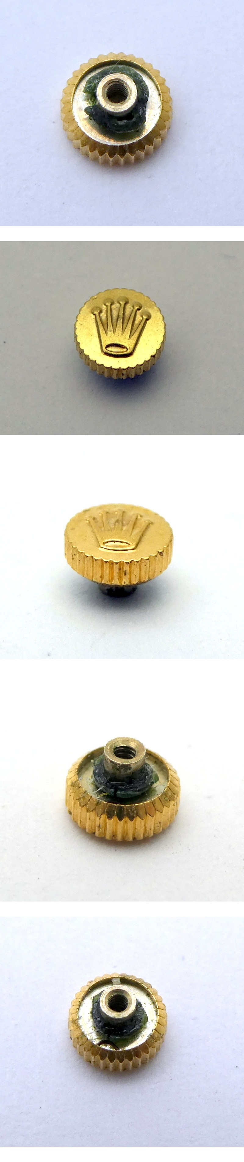 ROLEX リューズのみまとめ4点 3mmx2/5mmx2 クラウン/王冠マーク ゴールド パーツ 部品 アンティーク? ロレックス 1円~ K0678