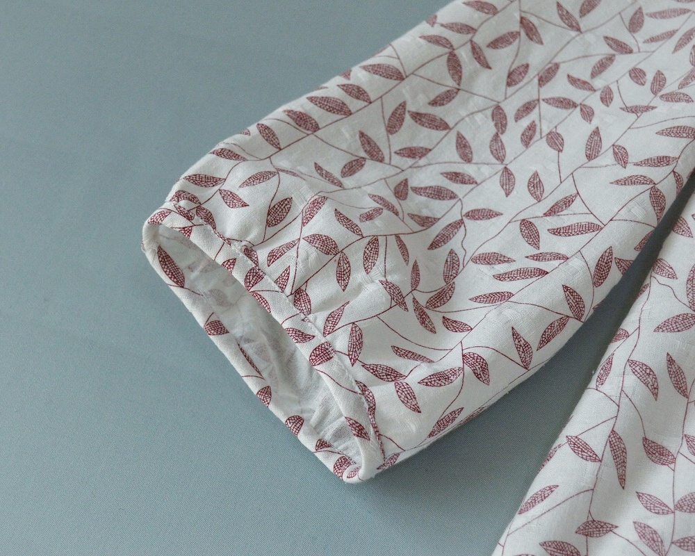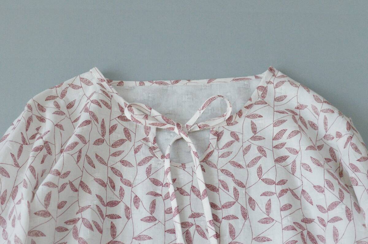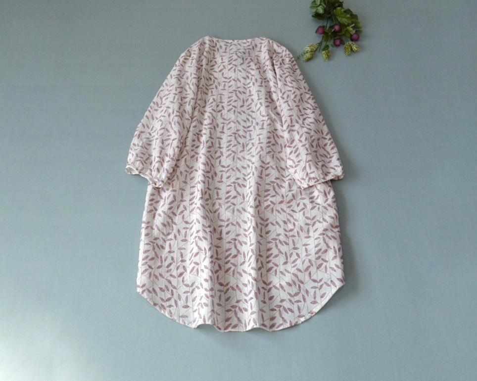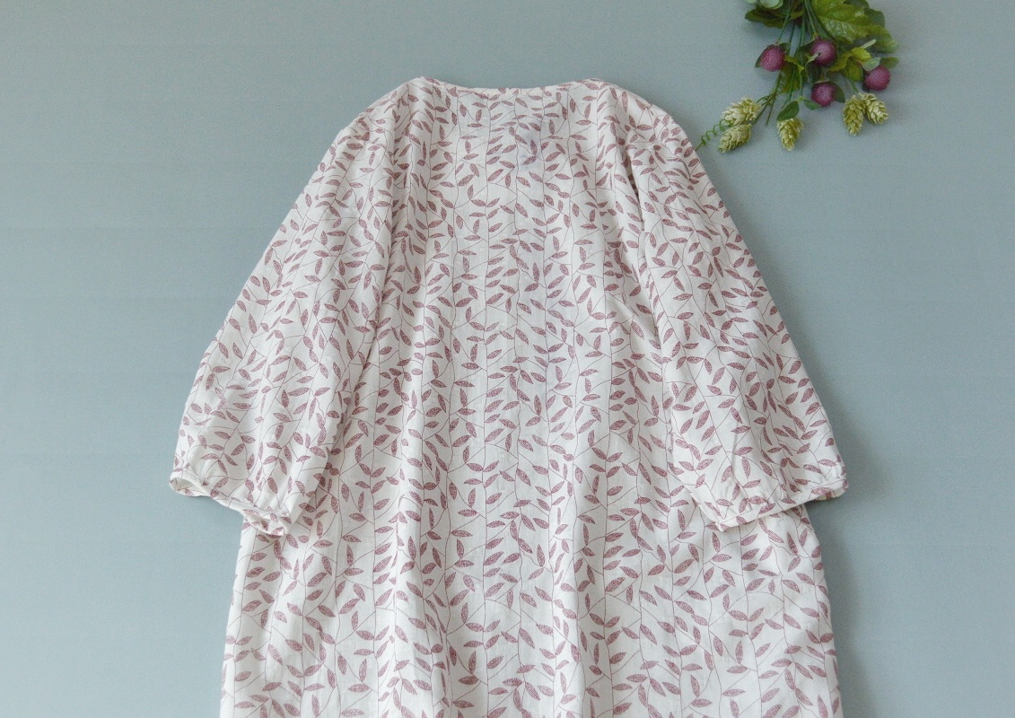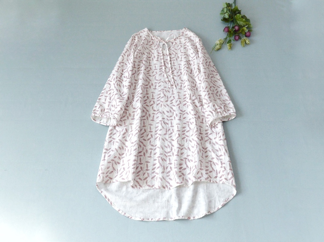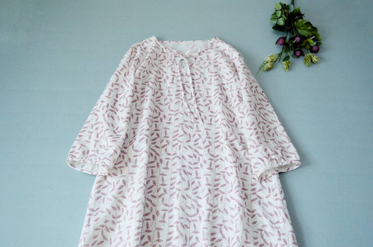 コットン100%葉っぱプリントポケット付大人可愛い七分袖チュニック♪