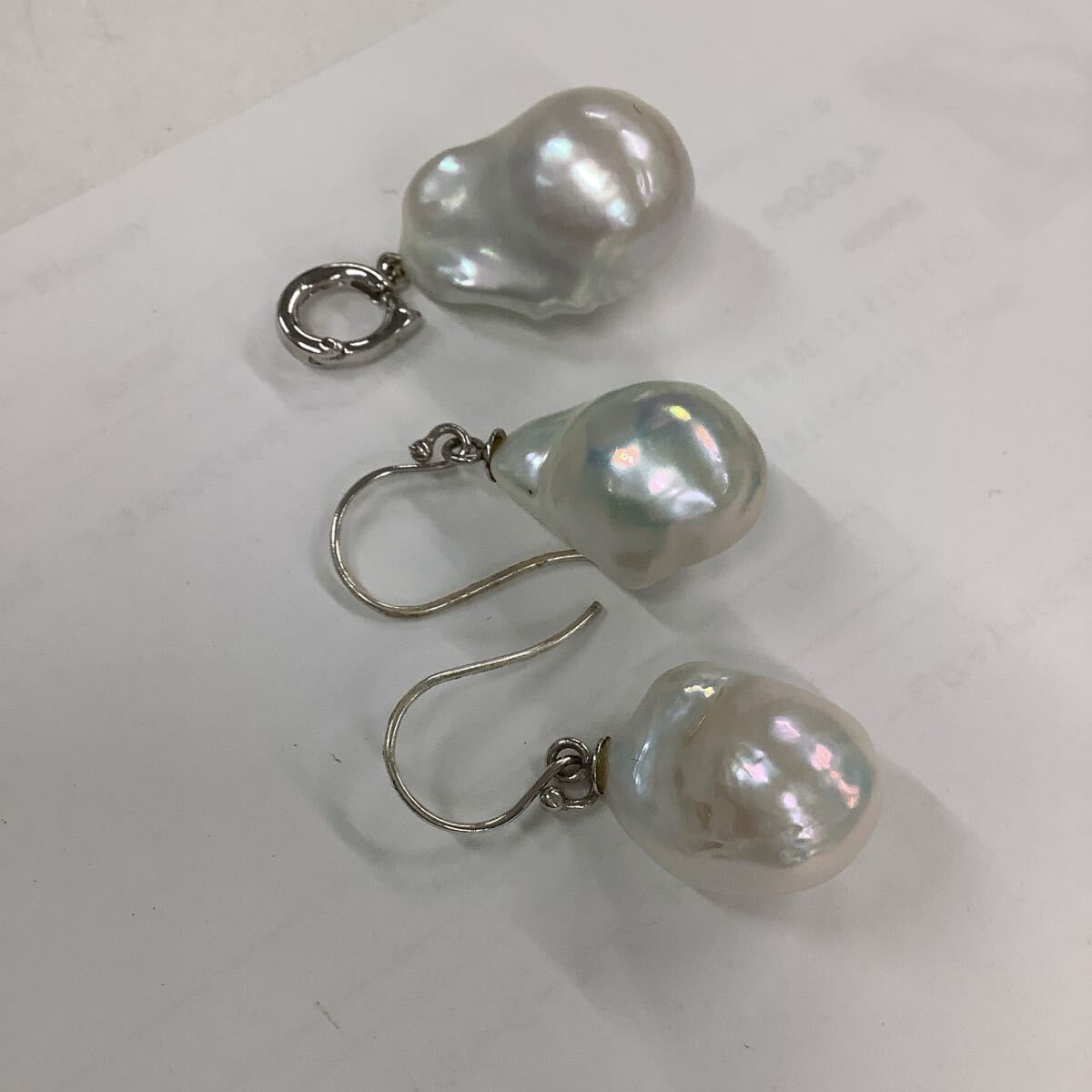 ●ハ2251H◎艷やか本真珠 バロックパール インパクト大★ ピアス・ペンダントトップ(チャーム) まとめて◎送料込み◎