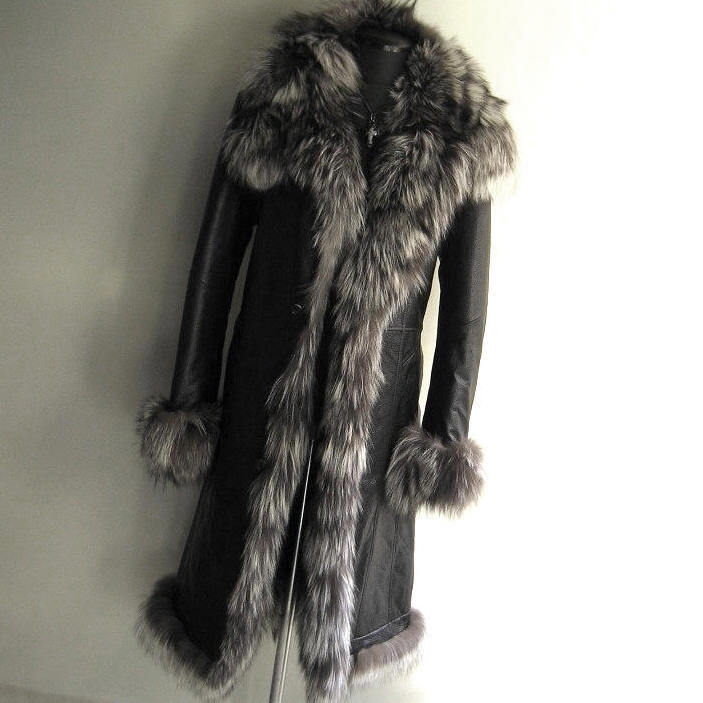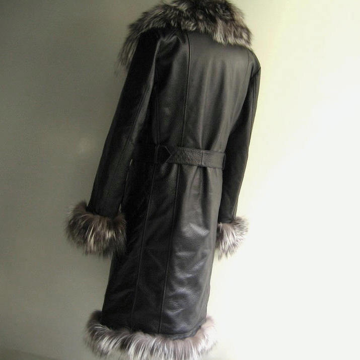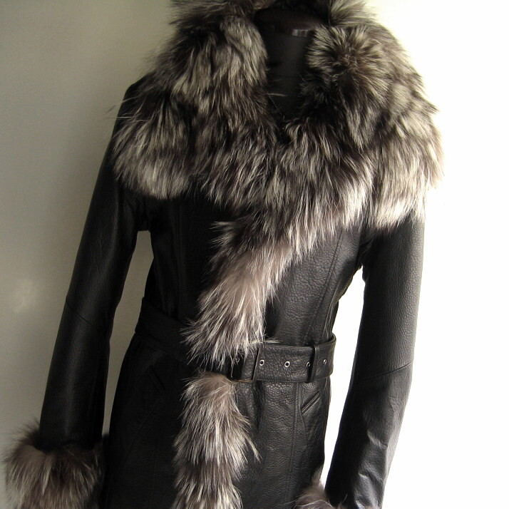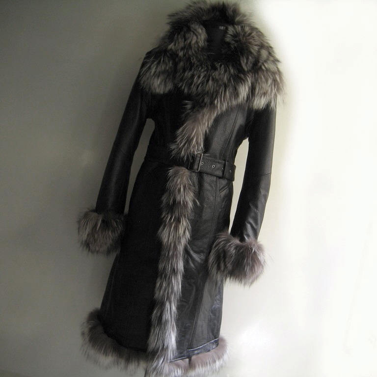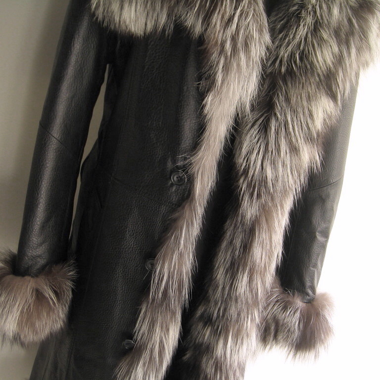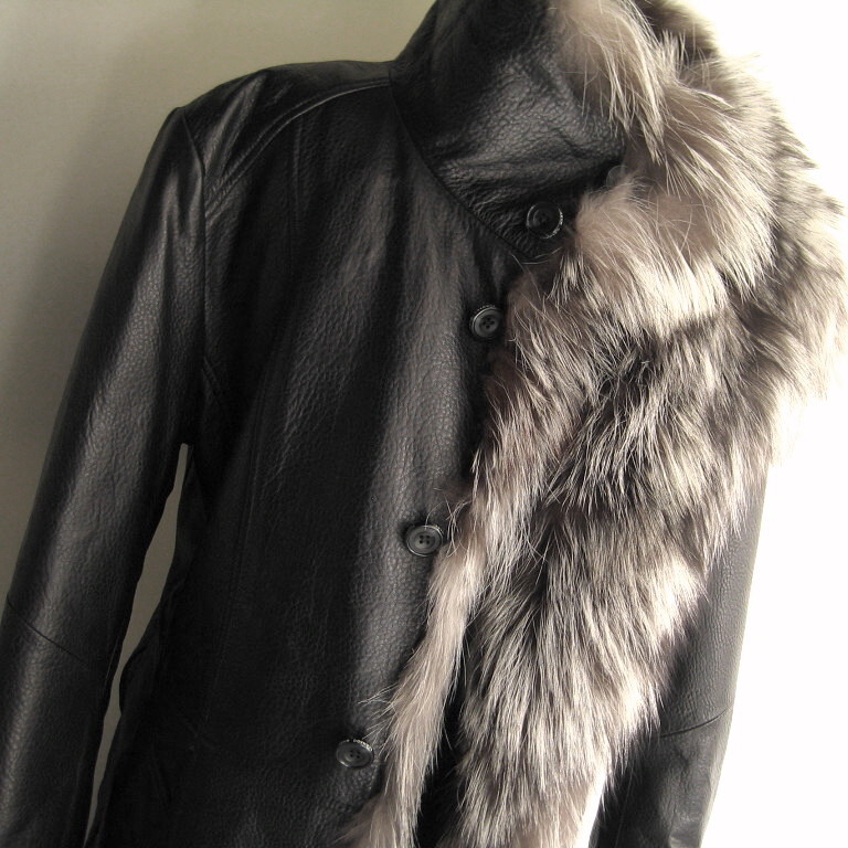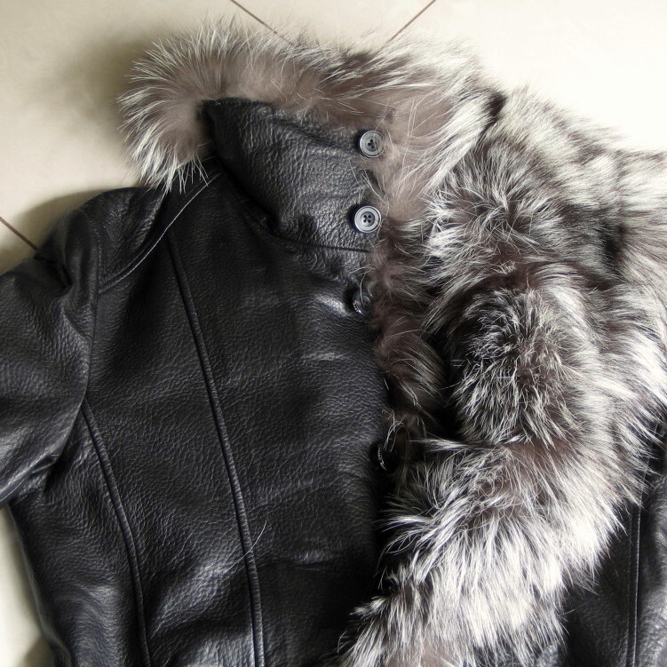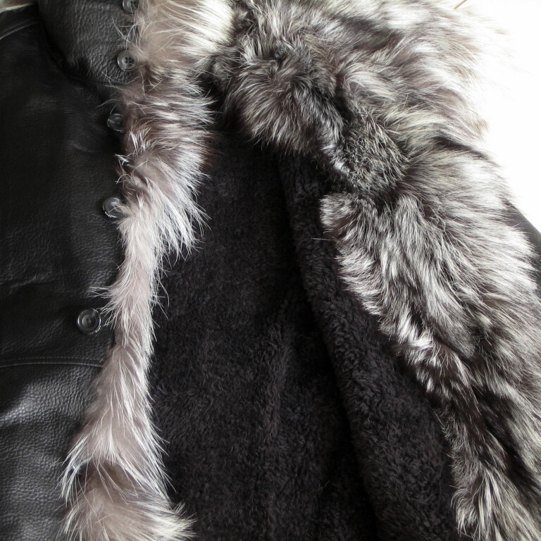 ■柔らかくもワイルドな顔立ちのシープレザーの衿周り~フロント各所には豪華なシルバーフォックスを搭載