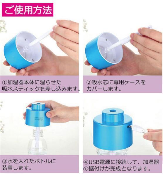 | ※カラーはピンクとなります。 ペットボトルに取り付けたら、直ぐに使えるミニ超音波加湿器♪ 電源オン中はLEDライトが光って、雰囲気を盛り上げてくれます♪ コンパクトサイズで、自宅や車内、職場、旅行先などでのご使用におススメです。♪ ◆本体サイズ: 14.5cm×6cm ◆ケーブル長さ:約1m ◆素材:ABS樹脂 ◆功能:脱臭・抗菌・除菌・加湿・LEDライト ◆付属品: 加湿器本体×1 USBケーブル×1 吸水スティック×2 ※画像にあるボトルと専用ケースは付属いたしません。 ◆対応ボトル:径28mm ◆ご使用方法: ①加湿器本体に湿らせた吸水スティックを差し込みます。 ②吸水芯に専用ケースをカバーします。 ③水を入れたボトルに装着します。 ④USB電源に接続して、加湿器の据付けが完成となります。 ※USB対応のため、パソコン、モバイルバッテリー、ACアダプタから電源が取れます。 ※ペットボルトのサイズによって、吸水スティックの長さを切って調節して下さい。 ※輸入品のため仕様が予告なく変更になる場合がございます。 |