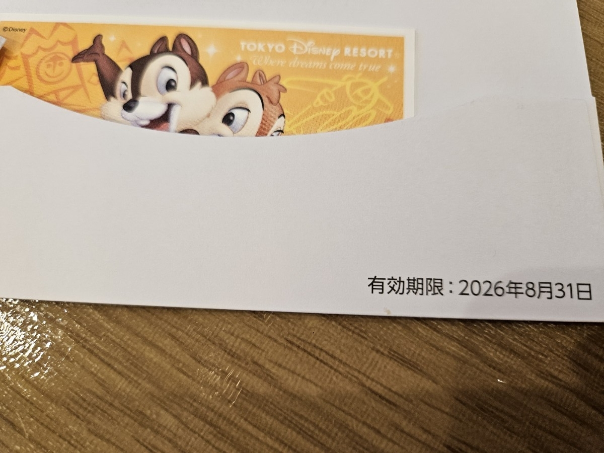 オリエンタルランド 株主優待 ディズニーリゾート 特別優待パスポート1枚です。有効期限は2026年8月31日までとなります。