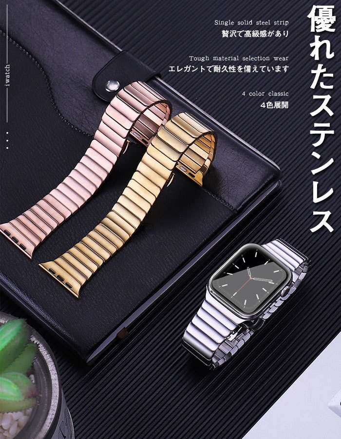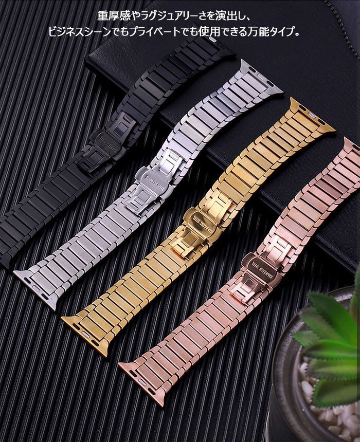 apple watch 対応 バンド ステンレスコンパチ アップルウォッチ 金属ベルト ウォッチバンド 金属バンド 【ローズゴールド 38/40MM】