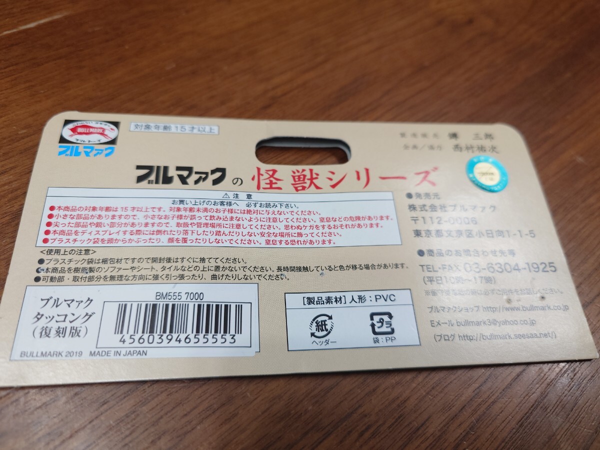 ブルマァク 復刻版のソフビ、タッコング(蓄光)です。