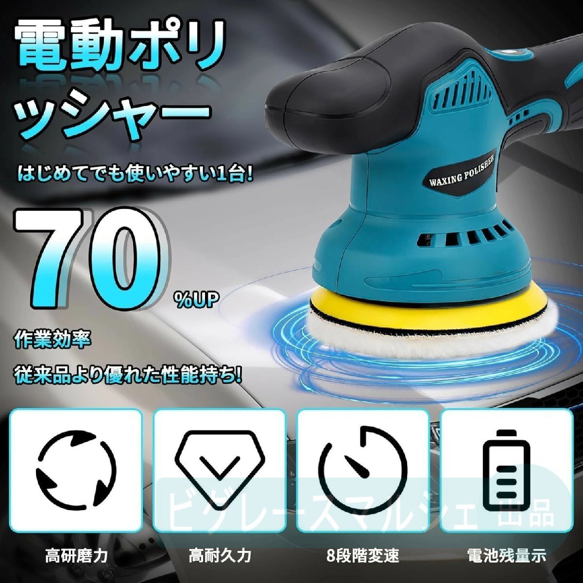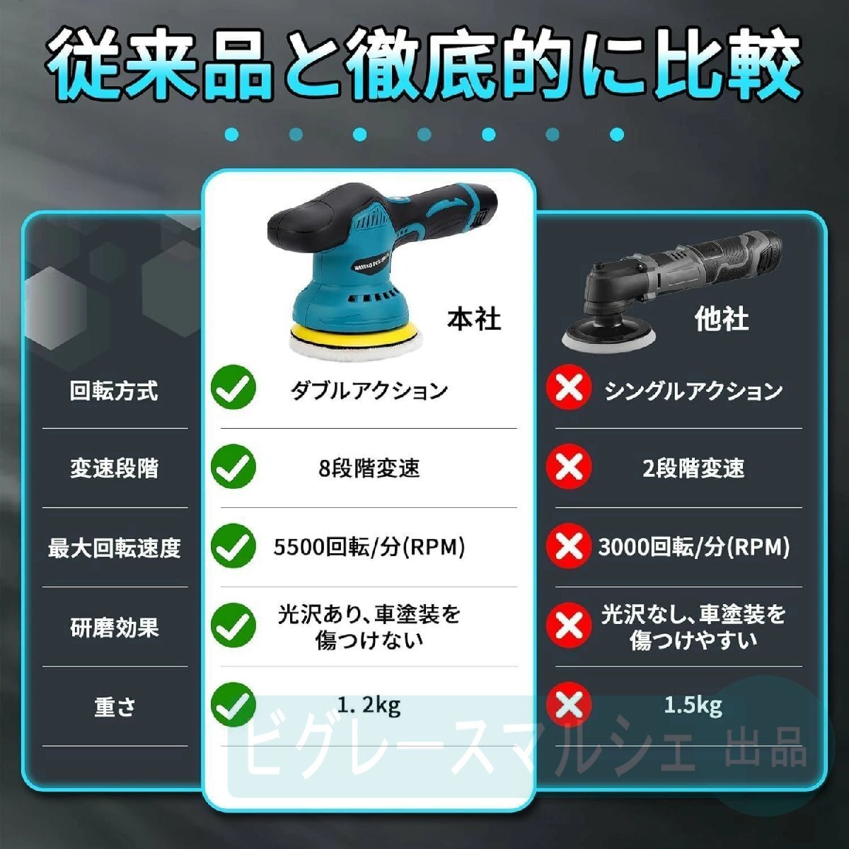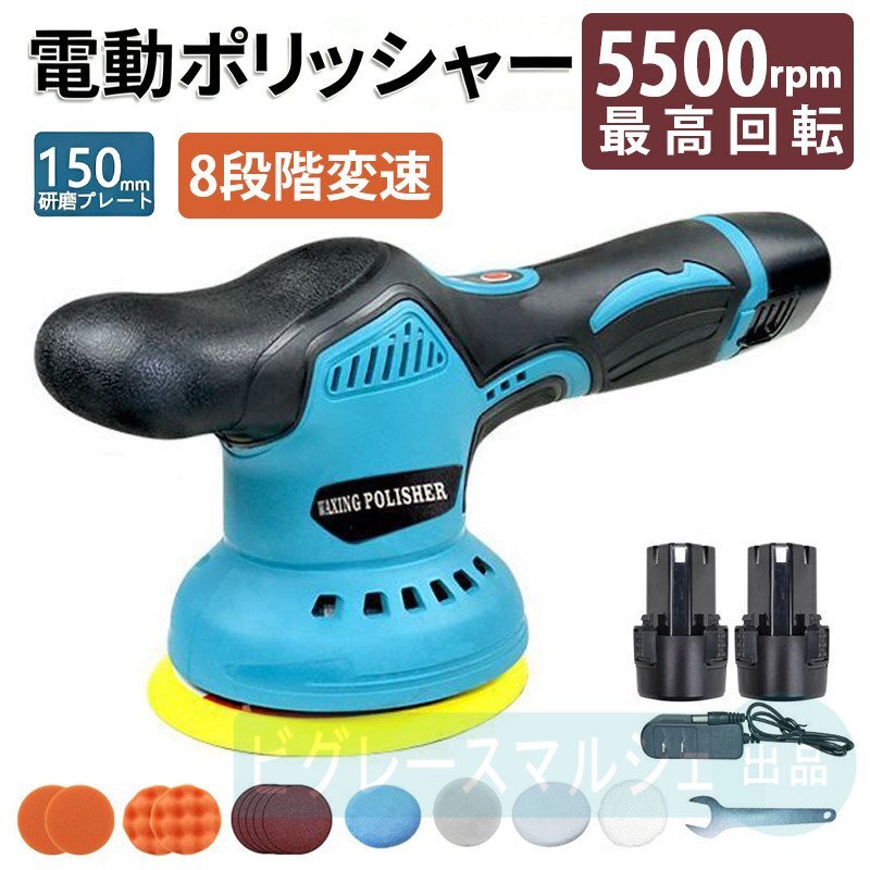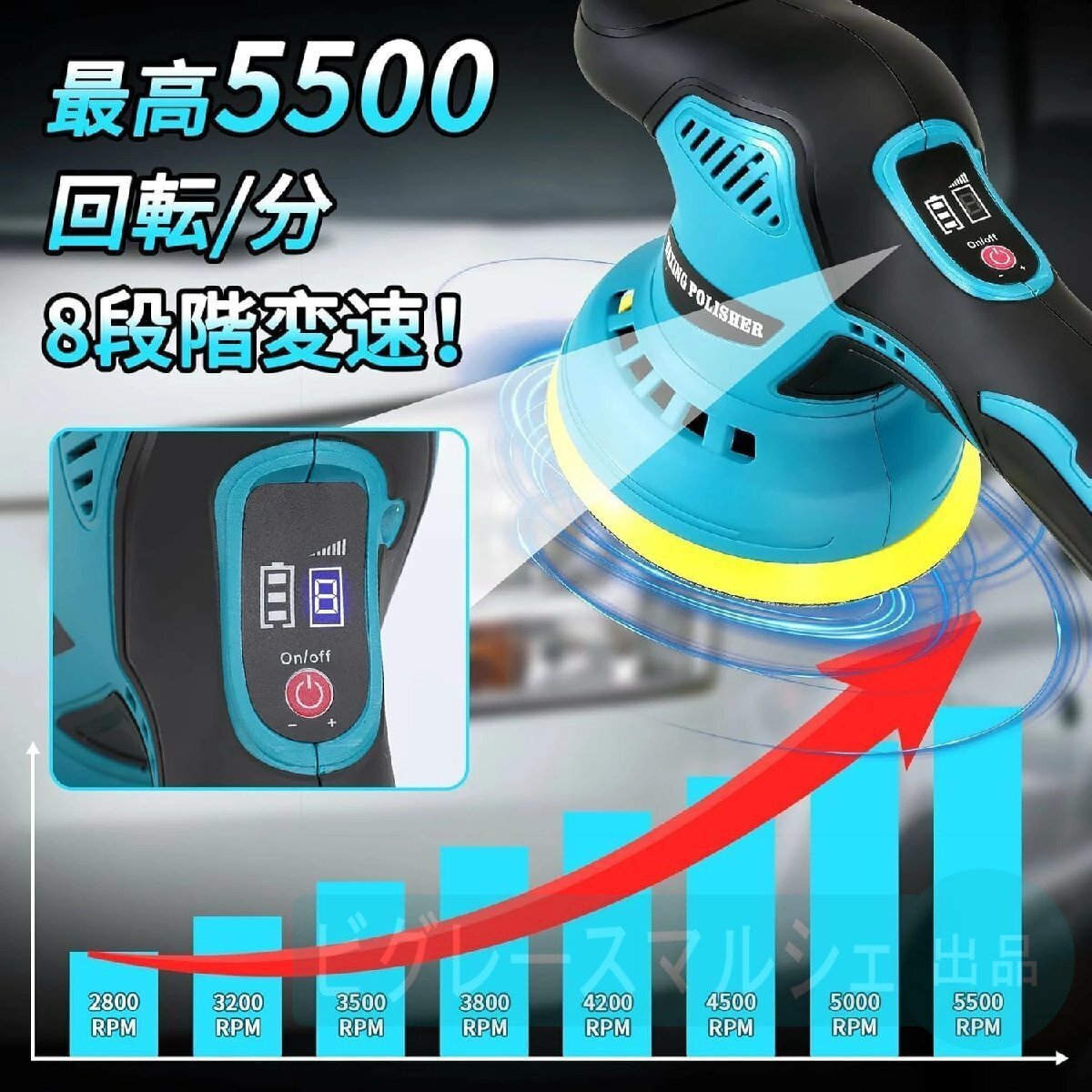電動ポリッシャー 車用ポリッシャー 8段変速 コードレス 150mmパッド 2800-5500RPM 研磨&ワックス対応 充電式ポリッシャー hw1219