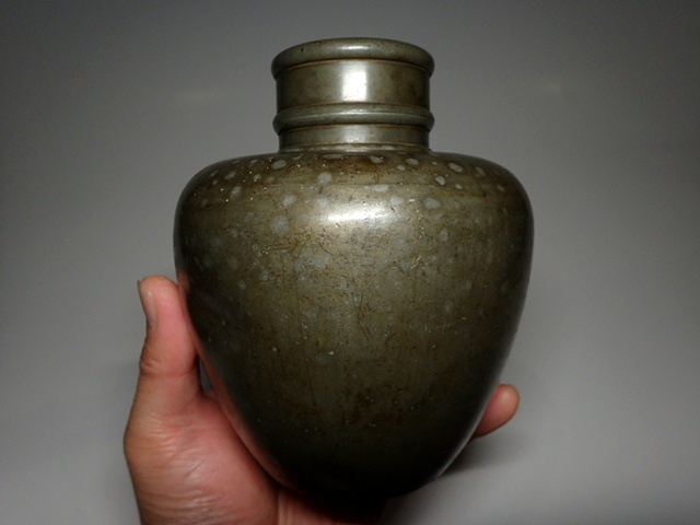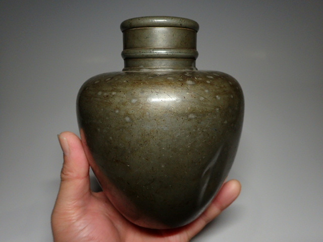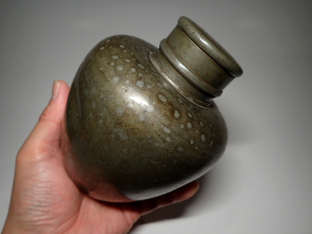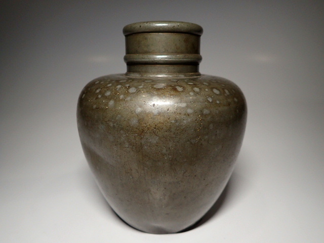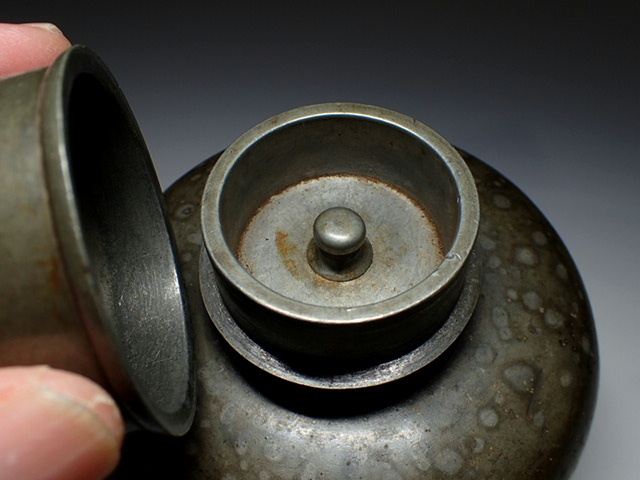 【古錫 斑紋 茶壺 茶入 茶心壺 高14.5cm 重745g 煎茶道具】