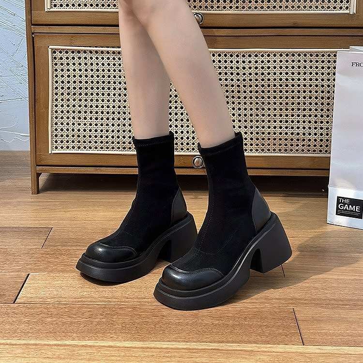 ・フェイクレザー×フェイクスウェードを切り替えたシーズンムードを高める1足。