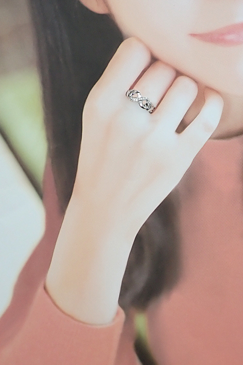 コメントティファニーの、リボンのようなラインで描かれた2つのハートがキュートな、ダブルラビングハートのリングです。ダイヤモンドがセッティングされており、上品なお手元を演出してくれます。