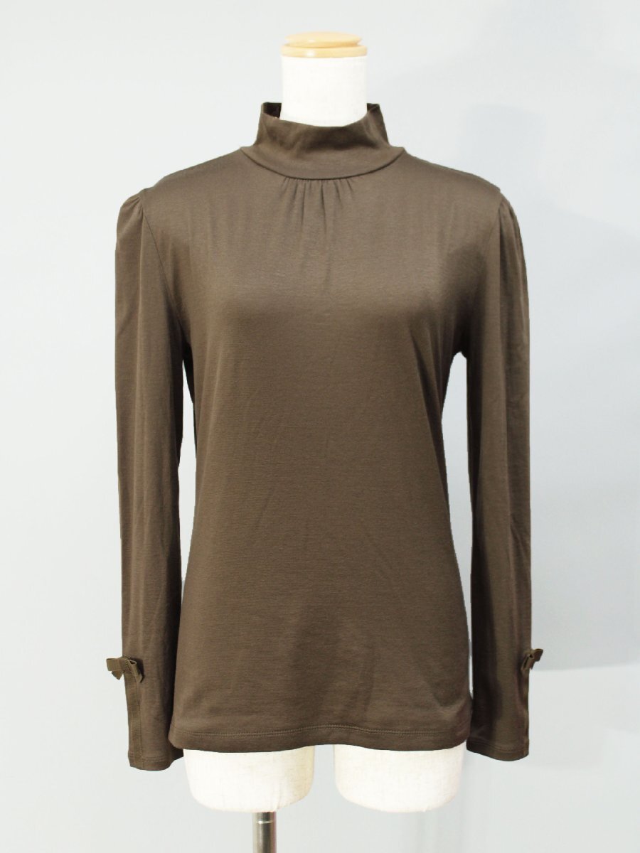 美品 エムズグレイシー 長袖ストレッチハイネックプルオーバー 茶38 an437