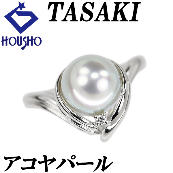 【セール開催中】タサキ 田崎真珠 アコヤ真珠 リング ダイヤモンド Pt900 TASAKI V字 送料無料 中古 宝正 902292