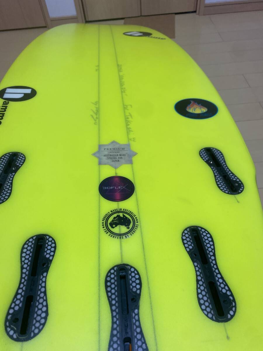ハモの一番人気モデル、FIREBALL!アウトラインはショートなのにパドルもテイクオフも激速!尖っているのに波取りに強いモデル。小波からオールラウンドに使え、スピードとドライブがつけやすい。乗りやすさ満点、中級者の上達、上級者の小波用にもピッタリです。フィンはトライフィンまたはクアッドもぜひお試しいただきたいです。この3DFLEXは粘りあるフレックスのPUで日本で大好評。反発も強く、アクションにキレもあり、デッキ面にはカーボンも入っているので強度もあります