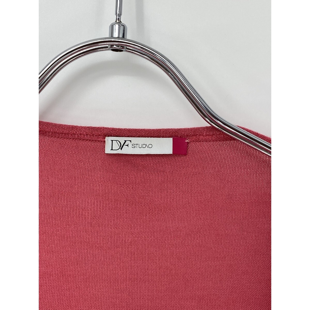 A8437/美品 春夏 DIANE von FURSTENBERG レーヨン シルク 前開き ボタンレス ロング 長袖 ニット リブ カーディガン M ピンク/レディース