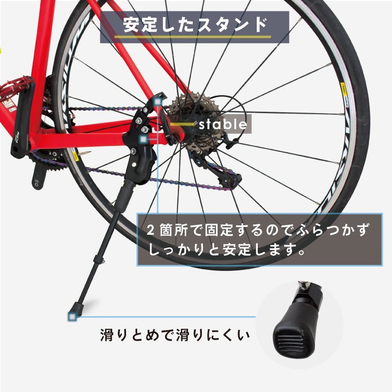 一度取り付ければ取り外し不用 足先だけで簡単に操作ができる安定型キックスタンドです。 ・ロードバイク、マウンテンバイク、クロスバイクに対応。 ・29インチの自転車に対応。 ・ステー同士の間隔はスライド調整できます。 シートステー側へ約3cm延長移動。 ・チェーンステーとシートステーの二箇所固定で 安定感があり、固定箇所への負担も軽減します。 ・キックしやすい高マンガン鋼のバネ素材 使用時・収納時でしっかりと止まり固定します。 サイズ:長さ38-49 cm (調整パーツ長さ21-32 cm) 対応幅:シートステー約Φ1.4-1.8 cm チェーンステー約Φ1.4-2.4 cm (スペーサー厚含む) 重量:420g 材質:スチール ジャンク品の為、正常に動作しない場合や修理が必要な場合等ある場合がございます。 キズ、汚れ、破損、使用感、付属品が足りない等ある場合がございます。ノークレーム、ノーリターン | |